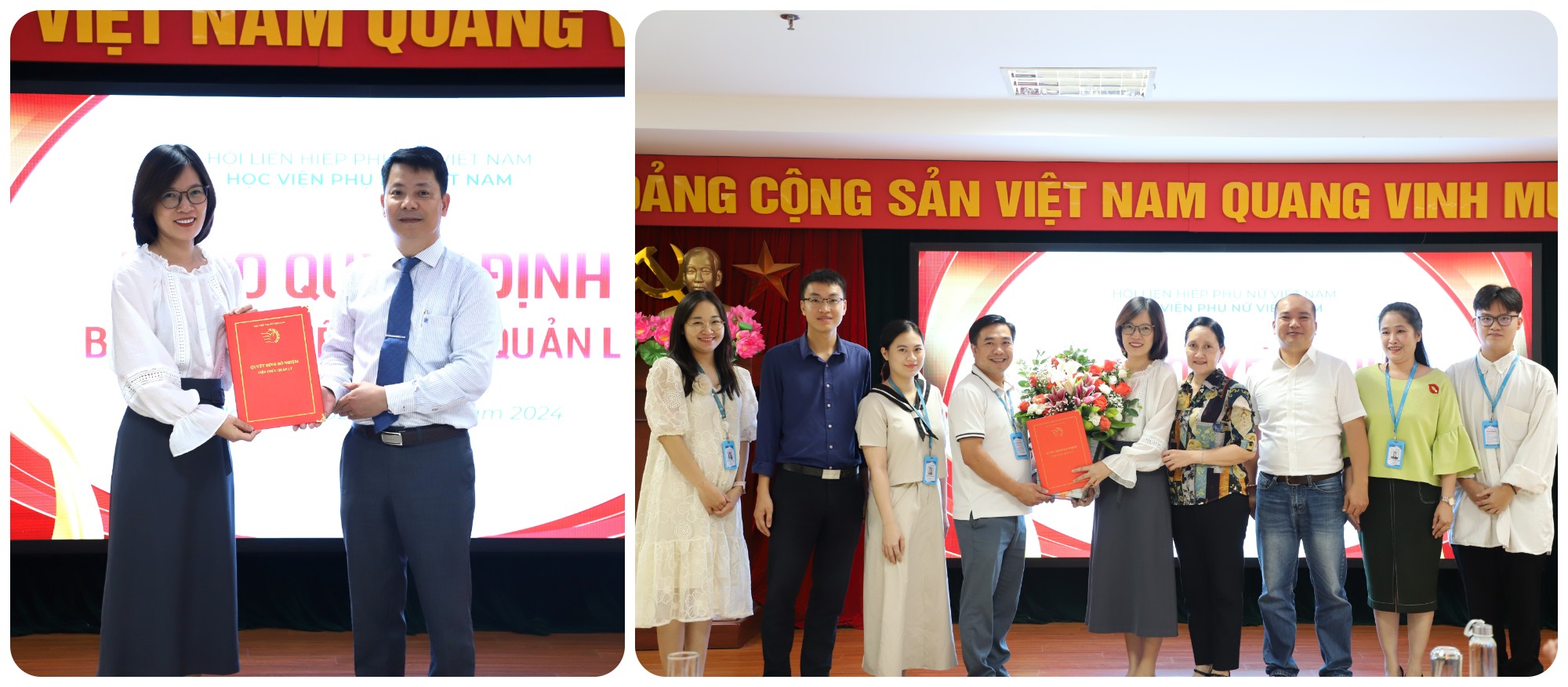 Các viên chức được bổ nhiệm gửi lời cảm ơn sự tin tưởng, tín nhiệm của Ban Giám đốc, tập thể cán bộ, viên chức của Học viện và hứa sẽ hoàn thành tốt nhiệm vụ được giao, đóng góp vào sự phát triển chung của Học viện Phụ nữ Việt Nam trong thời gian tới.