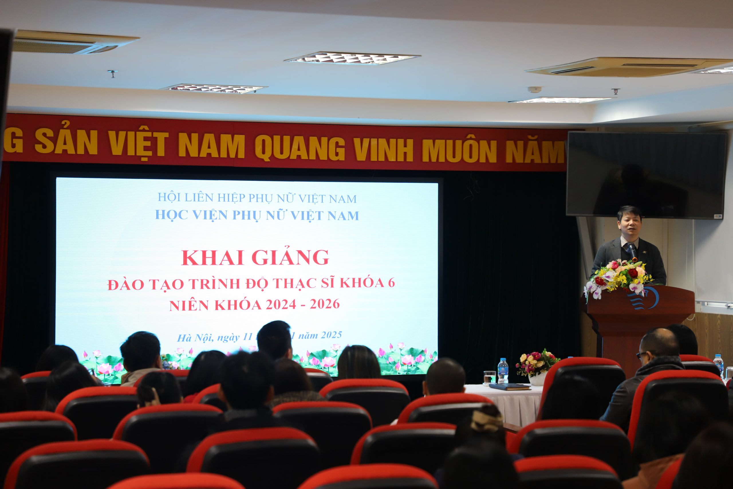 PGS.TS. Trần Quang Tiến – Giám đốc Học viện Phụ nữ Việt Nam phát biểu tại lễ khai giảng đào tạo trình độ thạc sĩ khóa 6