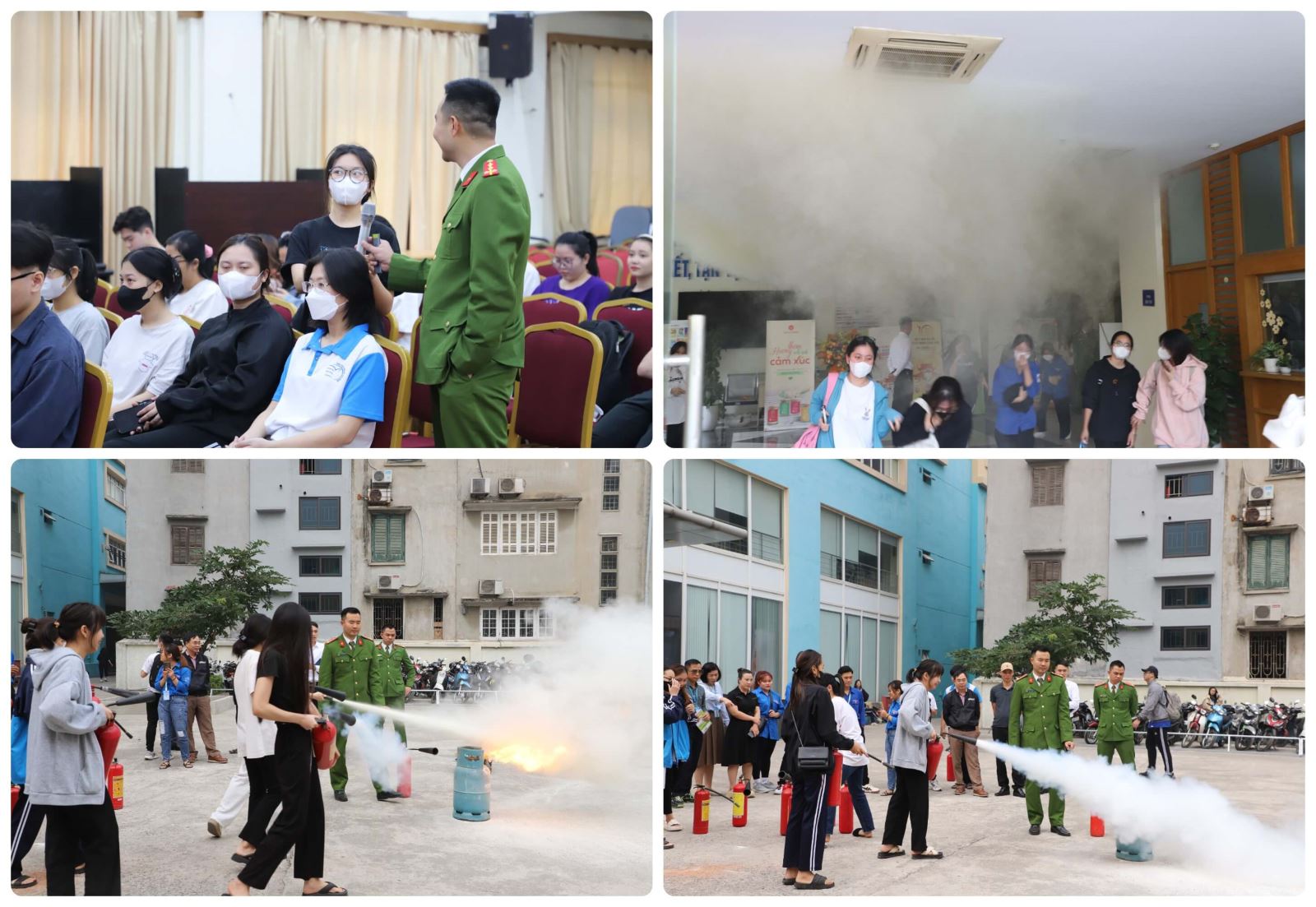 Sau khi được tiếp nhận các kiến thức về lý thuyết, các học viên được hướng dẫn thực hành thao tác sử dụng bình chữa cháy xách tay: Bình bột MFZ4, bình khí CO2-MT3 và sử dụng thành thạo các phương tiện PCCC được trang bị tại cơ sở và tham gia diễn tập phương án chữa cháy và cứu nạn, cứu hộ trực tiếp tại Học viện.