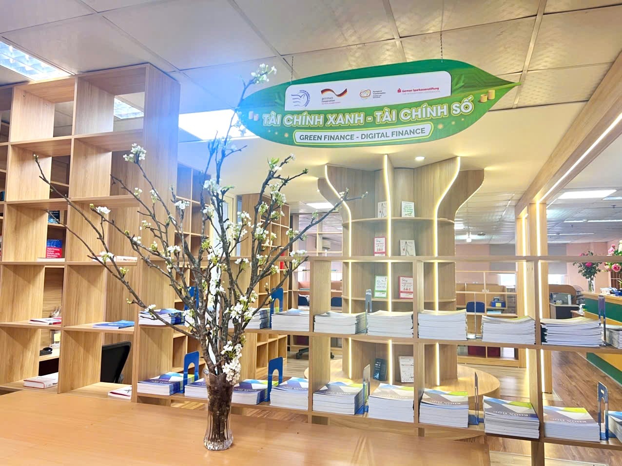 Quầy sách “Tài chính xanh – Tài chính số” được tài trợ bởi quỹ hợp tác các ngân hàng Tiết kiệm Đức DSIK (Deutsche Sparkassenstiftung für Internationale Kooperation), một tổ chức hỗ trợ phát triển giáo dục tài chính trên toàn cầu. Nhờ sự hỗ trợ này, quầy sách được trang bị những tài liệu chất lượng cao, giúp sinh viên tiếp cận với các kiến thức tài chính xanh và tài chính số một cách bài bản và chuyên sâu.