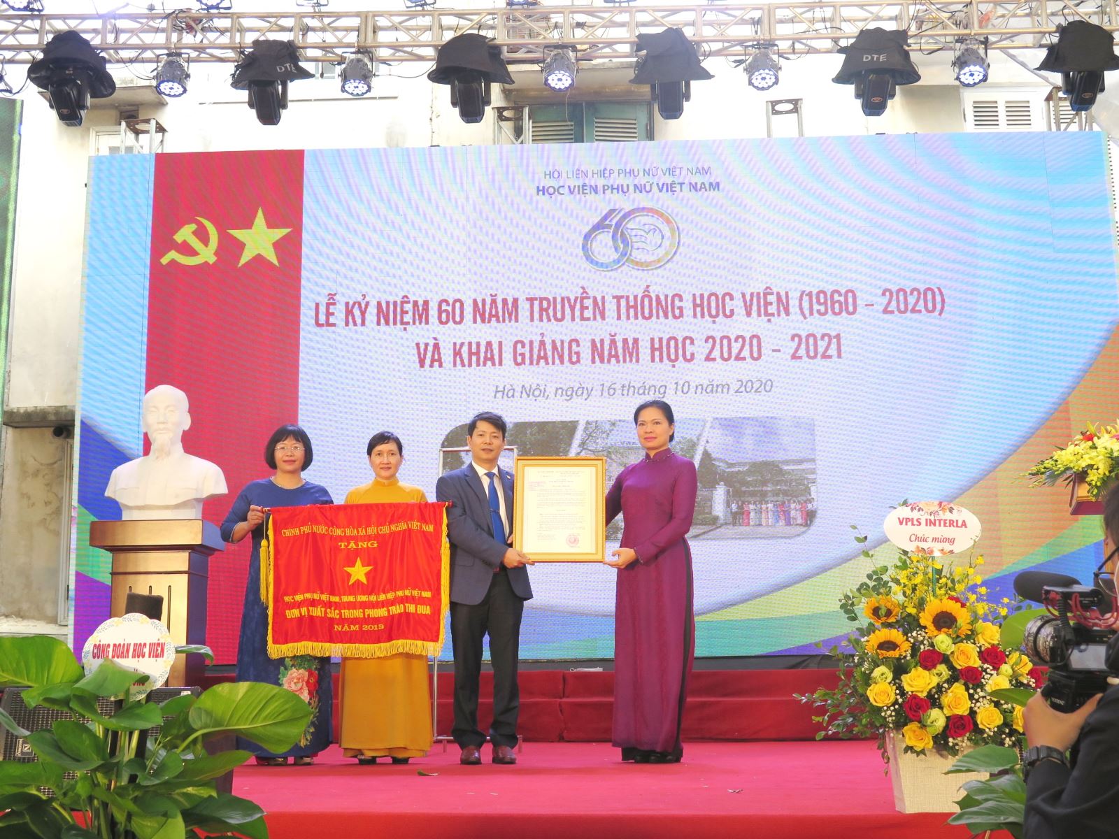 Trong không khí phấn khởi, vui mừng của lễ kỷ niệm 60 năm ngày truyền thống và khai giảng năm học mới 2020 – 2021, học viện Phụ nữ Việt Nam đã trao học bổng cho các tân sinh viên đạt điểm cao trong kỳ thi tốt nghiệp THPT năm 2020 và các sinh viên đạt thành tích xuất sắc trong học tập và rèn luyện. Ban Giám đốc Học viện cũng trao bằng cử nhân cho 88 tân cử nhân của Học viện Phụ nữ Việt Nam.
