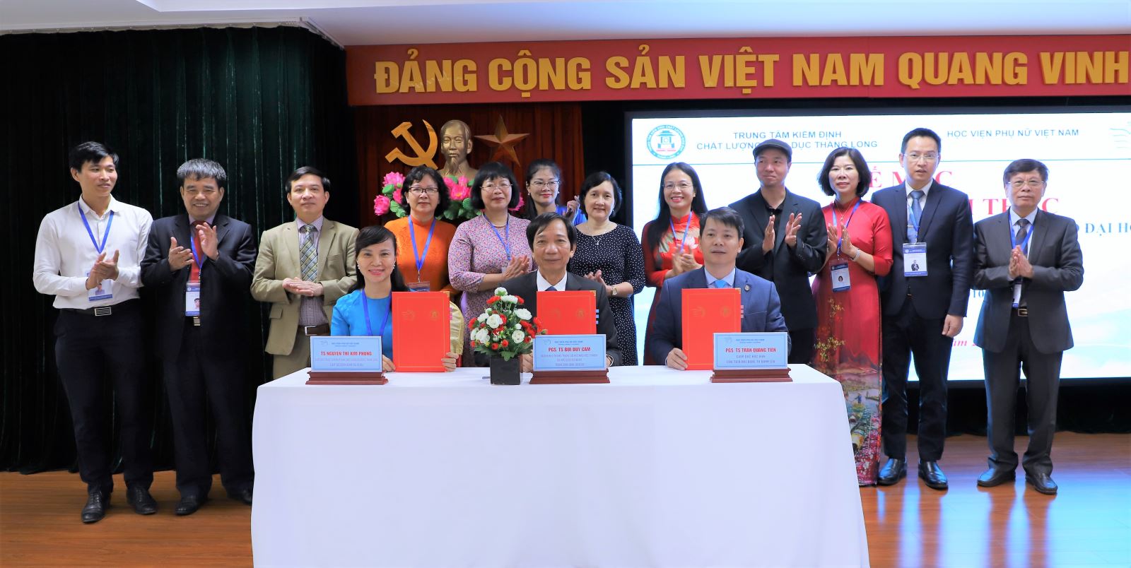 Sau quá trình khảo sát chính thức, Học viện Phụ nữ Việt Nam, đại diện Trung tâm Kiểm định chất lượng giáo dục Thăng Long và đại diện Đoàn đánh giá ngoài đã thống nhất ký Biên bản hoàn thành chương trình khảo sát. Cùng ký kết Biên bản có PGS.TS. Trần Quang Tiến, Giám đốc Học viện, TS. Nguyễn Thị Kim Phụng – Giám đốc Trung tâm KĐCLGD Thăng Long, Giám sát đoàn ĐGN; PGS.TS. Bùi Duy Cam – Trưởng đoàn đánh giá ngoài.