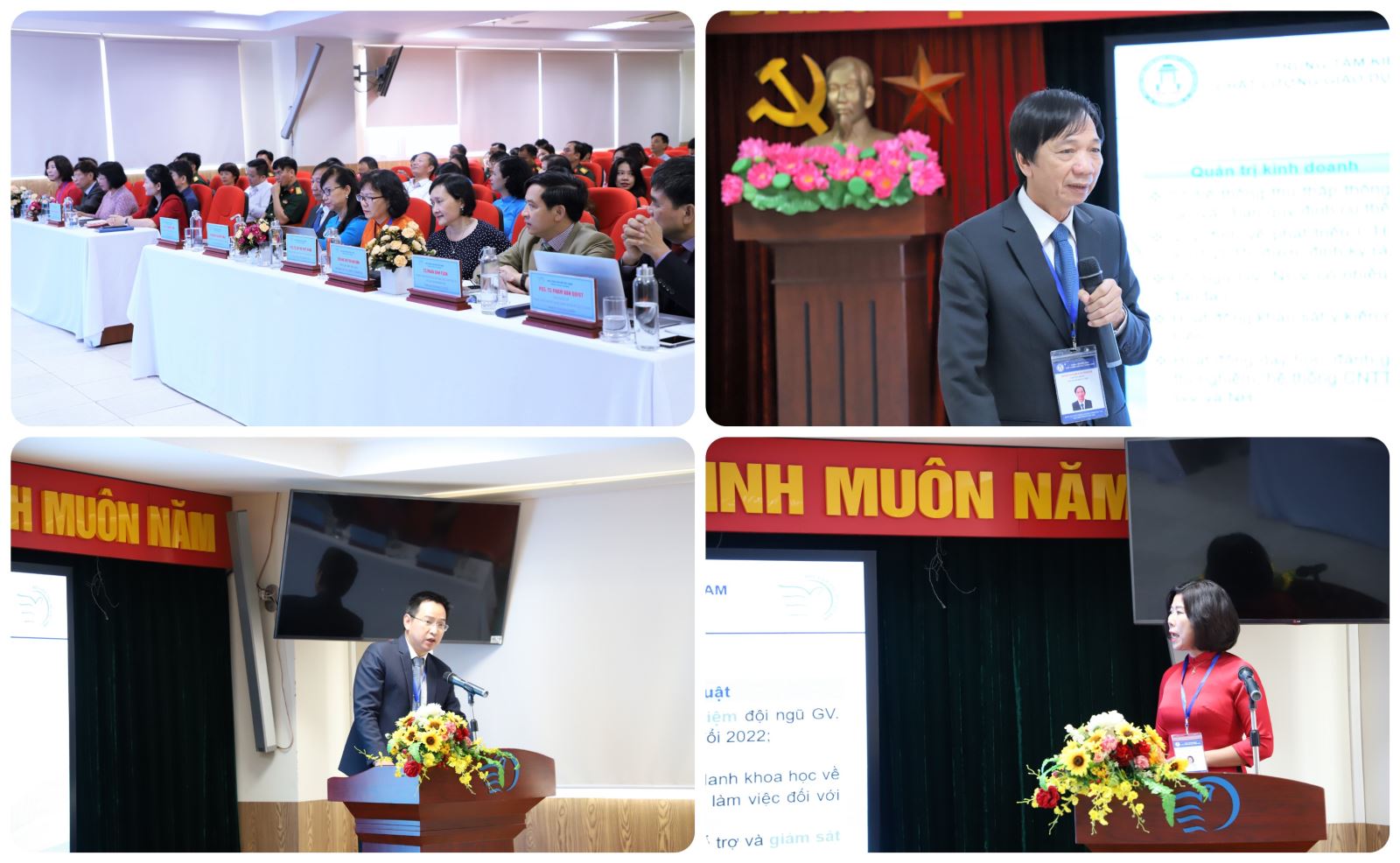 Đại diện Trung tâm KĐCLGD Thăng Long có TS. Nguyễn Thị Kim Phụng – Giám đốc Trung tâm – Giám sát đoàn đánh giá ngoài. Về phía đoàn đánh giá ngoài có PGS.TS. Bùi Duy Cam – Nguyên Hiệu trưởng Trường Đại học Khoa học Tự nhiên, Đại học Quốc gia Hà Nội – Trưởng đoàn đánh giá ngoài và các thành viên của đoàn.