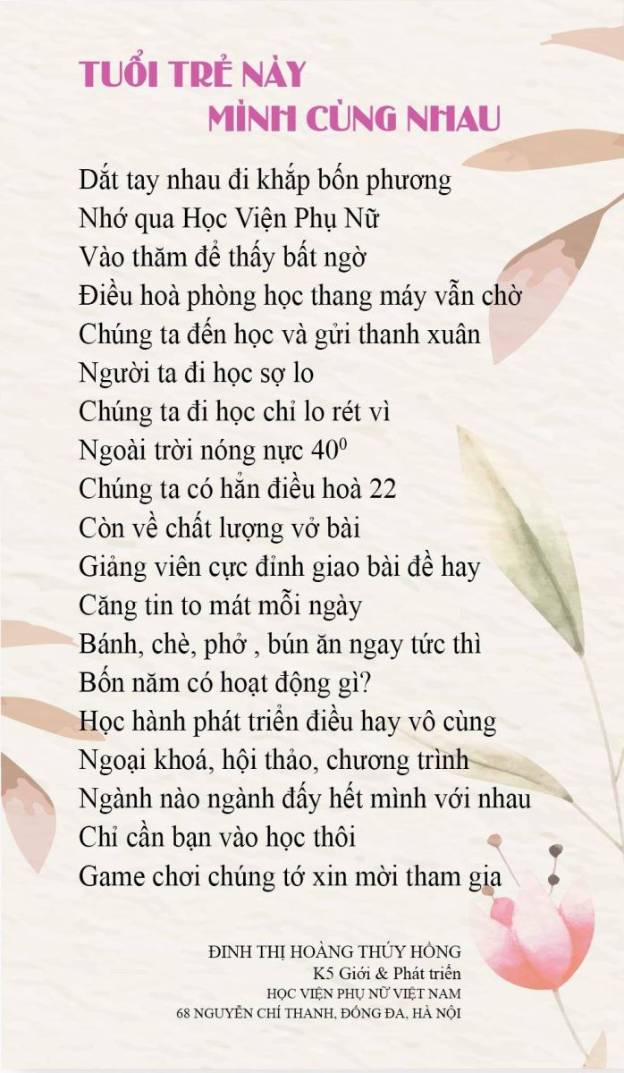 © Copyright 2024 HocVienPhuNuVietNam, All rights reserved ® Học viện Phụ nữ Việt Nam giữ bản quyền nội dung trên website này