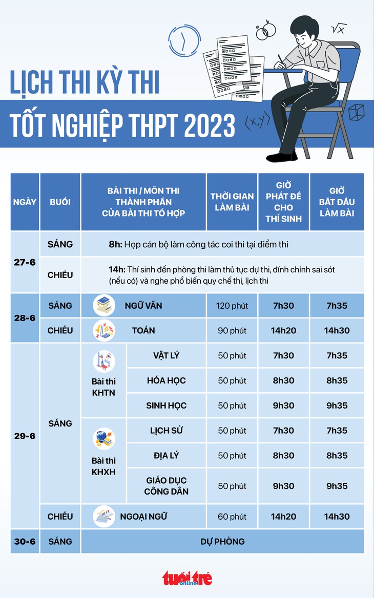 Dự kiến khoảng một triệu thí sinh tham dự kỳ thi. Theo Bộ Giáo dục và Đào tạo, nội dung đề thi tốt nghiệp THPT 2023 chủ yếu trong chương trình lớp 12.