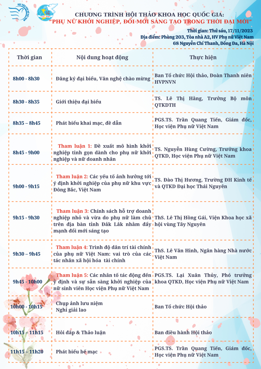 Dưới đây là chương trình cụ thể của Hội thảo.