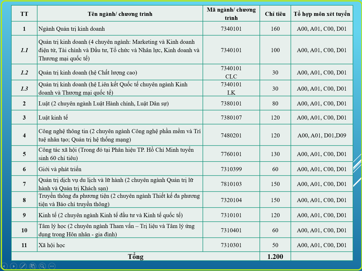 yes Năm 2022, Học viện Phụ nữ Việt Nam tuyển sinh 11 ngành đào tạo bao gồm: Công nghệ thông tin (2 chuyên ngành Công nghệ phần mềm và Trí tuệ nhân tạo; Quản trị hệ thống mạng); Luật (2 chuyên ngành Luật Hành chính, Luật Dân sự); Luật kinh tế; Công tác xã hội; Giới và phát triển; Quản trị dịch vụ du lịch và lữ hành (2 chuyên ngành Quản trị lữ hành và Quản trị Khách sạn); Kinh tế (2 chuyên ngành Kinh tế đầu tư và Kinh tế quốc tế); Tâm lý học (2 chuyên ngành Tham vấn – Trị liệu và Tâm lý ứng dụng trong Hôn nhân – gia đình); Xã hội học; Quản trị kinh doanh (4 chuyên ngành: Marketing và Kinh doanh điện tử, Tài chính và Đầu tư, Tổ chức và Nhân lực, Kinh doanh và Thương mại quốc tế). Đối với ngành Quản trị kinh doanh, năm 2022, Học viện Phụ nữ Việt Nam chính thức tuyển sinh thêm 2 hệ đào tạo thuộc ngành Quản trị kinh doanh là hệ Chất lượng cao và hệ Liên kết Quốc tế với Đại học Ming Chuan, Đài Loan (chuyên ngành Kinh doanh và Thương mại quốc tế).