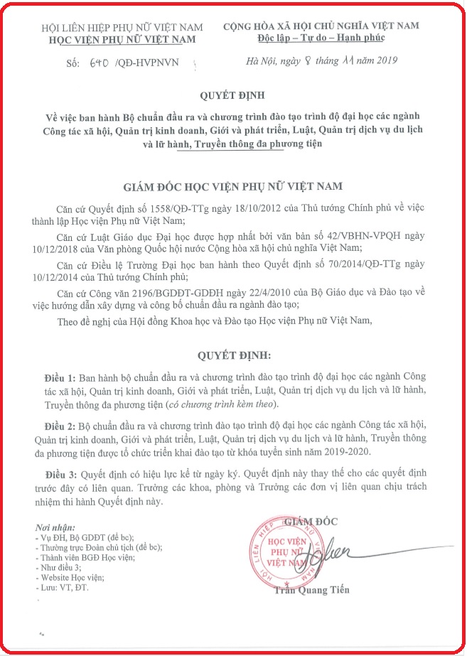 CHUẨN ĐẦU RA NGÀNH QUẢN TRỊ KINH DOANH
