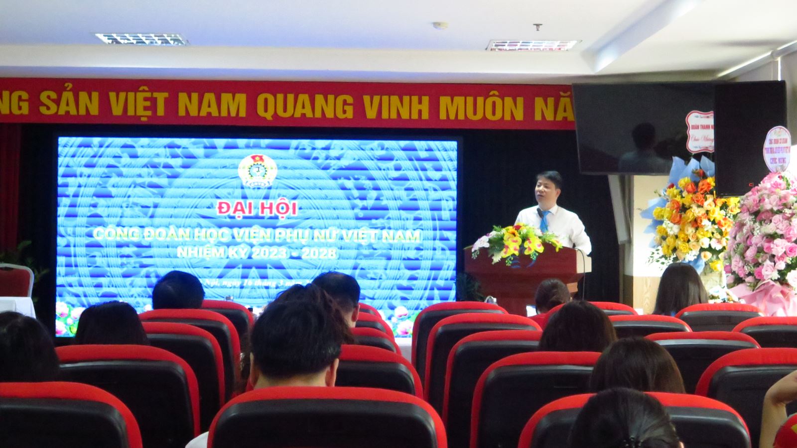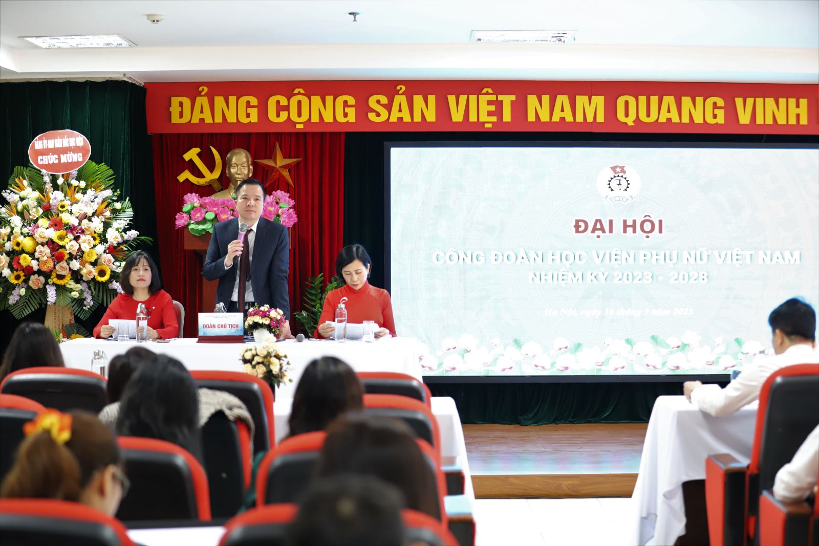 Phát biểu chỉ đạo Đại hội, đồng chí Trần Quang Tiến – Uỷ viên BCH Đảng uỷ Cơ quan TƯ Hội Liên hiệp Phụ nữ Việt Nam, Bí thư Đảng uỷ, Giám đốc Học viện Phụ nữ Việt Nam biểu dương, ghi nhận và đánh giá cao sự cố gắng nỗ lực của Ban Chấp hành Công đoàn trong nhiệm kỳ qua. Đóng góp của Công đoàn đã góp phần củng cố, nâng cao vị thế của tổ chức Công đoàn, đóng góp quan trọng vào việc thực hiện thắng lợi các nhiệm vụ chính trị của Học viện. Đồng thời, đồng chí Trần Quang Tiến mong muốn nhiệm kỳ tới, Ban Chấp hành Công đoàn tiếp tục phát huy thế mạnh, đoàn kết, nỗ lực hoàn thành tốt các mục tiêu, kế hoạch đề ra, tổ chức thêm nhiều hoạt động văn hoá, văn nghệ, tạo môi trường gắn kết, rèn luyện sức khoẻ cho công đoàn viên sau những giờ làm việc. Đồng chí cũng lưu ý, Ban Chấp hành công đoàn cần tiếp tục tham mưu, đề xuất những chính sách có lợi cho công đoàn viên, người lao động trong thời gian tới.