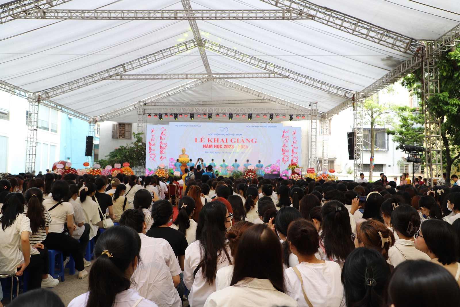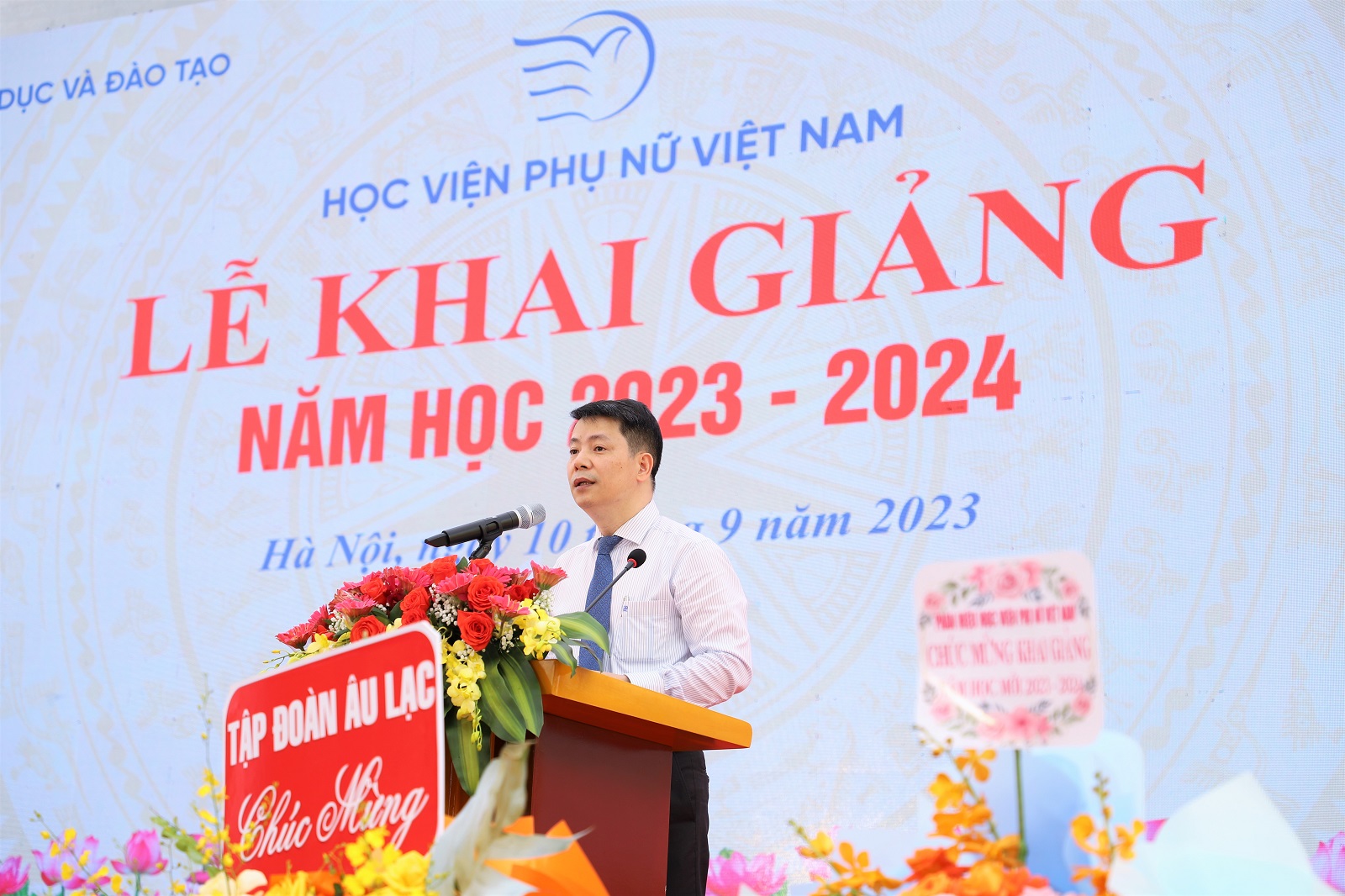 Hôm nay, Học viện Phụ nữ Việt Nam long trọng tổ chức khai giảng năm học mới (năm học 2023-2024). Lời đầu tiên cho phép tôi thay mặt Đảng ủy, BGĐ Học viện, cùng toàn thể giảng viên, viên chức, người lao động và sinh viên Học viện, nhiệt liệt chào mừng các đồng chí lãnh đạo Hội LHPN Việt Nam, quý vị đại biểu, khách quý đã về dự Lễ khai giảng năm học mới. Đặc biệt, Thầy xin nồng nhiệt chúc mừng và chào đón hơn 1500 tân sinh viên khóa 11 của Học viện Phụ nữ Việt Nam. (Trân trọng đề nghị riêng các thầy giáo, cô giáo, viên chức, người lao động dành 1 tràng pháo tay thật to và kéo dài để chào mừng các em tân sinh viên. Xin trân trọng cảm ơn).