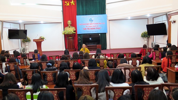 Buổi nói chuyện do tổ chức Công đoàn, tổ chức Hội Phụ nữ và Ban Gia đình Xã hội – TW Hội LHPN Việt Nam phối hợp tổ chức ngày 15/3/2016 chào mừng Ngày Quốc tế hạnh phúc có sự tham dự của Ủy viên TW Đảng, Phó Chủ tịch Hội LHPN Việt Nam Nguyễn Thị Thu Hà; lãnh đạo, cán bộ, viên chức của các Ban, đơn vị thuộc TW Hội LHPN Việt Nam. 25 hội viện Hội Phụ nữ Học viện đã cùng tham gia sự kiện này.