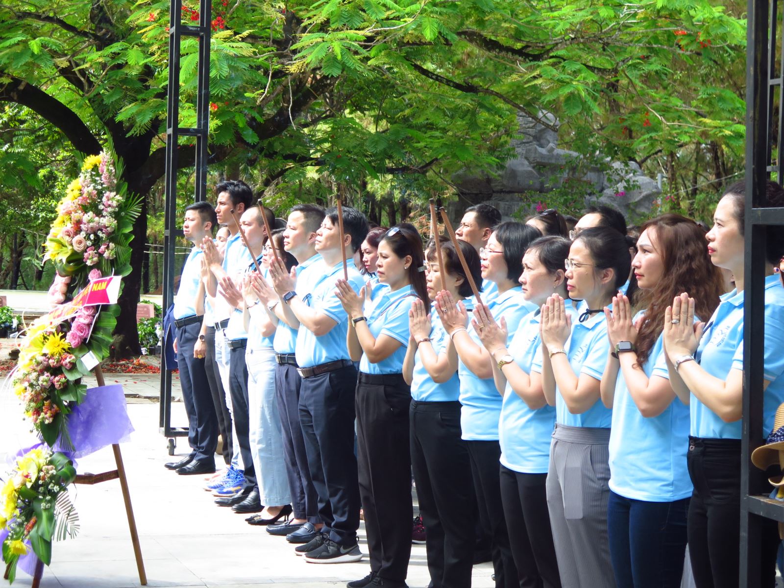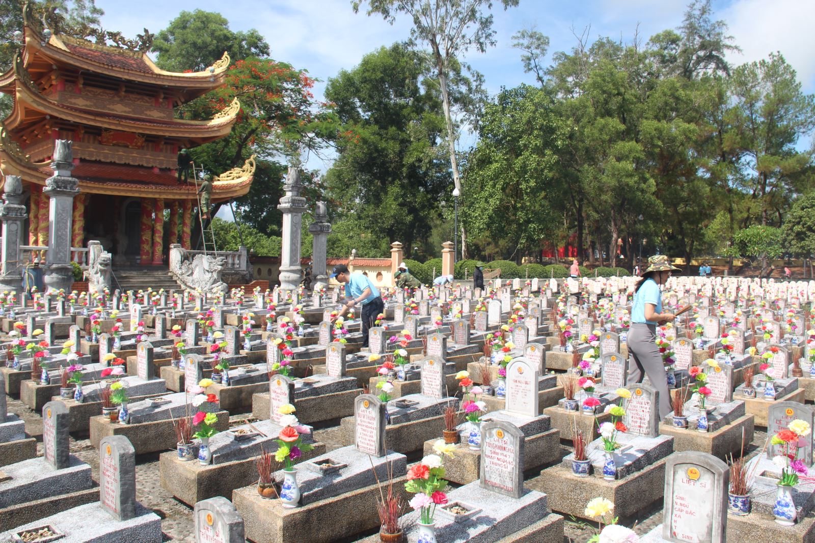 Cả đoàn thành kính tưởng niệm các anh hùng liệt sĩ tại đài tưởng niệm sau đó lặng lẽ tỏa đi khắp nghĩa trang. Mỗi nén hương thơm nhắc chúng tôi nhớ về những hi sinh cao cả của các liệt sĩ. Những chàng trai, cô gái 18, đôi mươi còn mang trong mình bao khát vọng. Mỗi thành viên của đoàn tỏa về những địa danh là quê hương của mình để tìm kiếm những dòng tên liệt sĩ có quê quán, cùng xã, huyện quen thuộc của mình để tri ân, để thắp nén hương ấm lòng người nằm xuống. Còn nữa, có rất nhiều những tấm bia vô danh lặng nhìn chúng tôi tìm đến để thắp lên một nén hương thành kính. Các chiến sĩ cảm tử vì Tổ Quốc bình yên bên đồng đội nơi này suốt bao năm tháng không một ai biết họ tên, quê quán, chỉ biết họ đã đánh đổi tất cả vì hòa bình, độc lập, tự do của dân tộc.