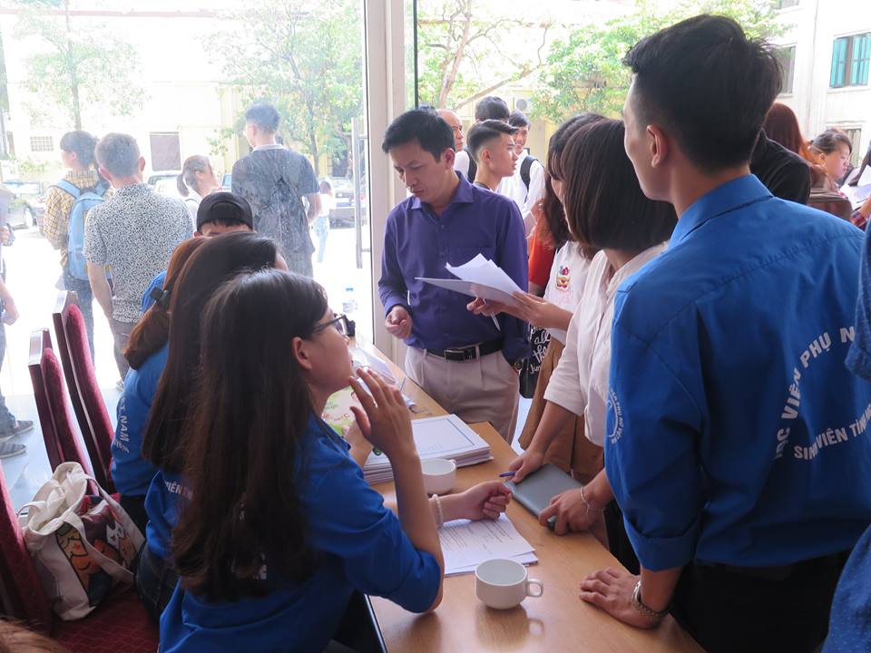 Nhằm tạo điều kiện thuận lợi cho các tân sinh viên nhập học, Học viện Phụ nữ Việt Nam đã xây dựng kết hoạch, bố trí tiếp đón tại sảnh rộng rãi để tạo điều kiện cho các em có thể làm thủ tục nhanh chóng, đơn giản nhất.