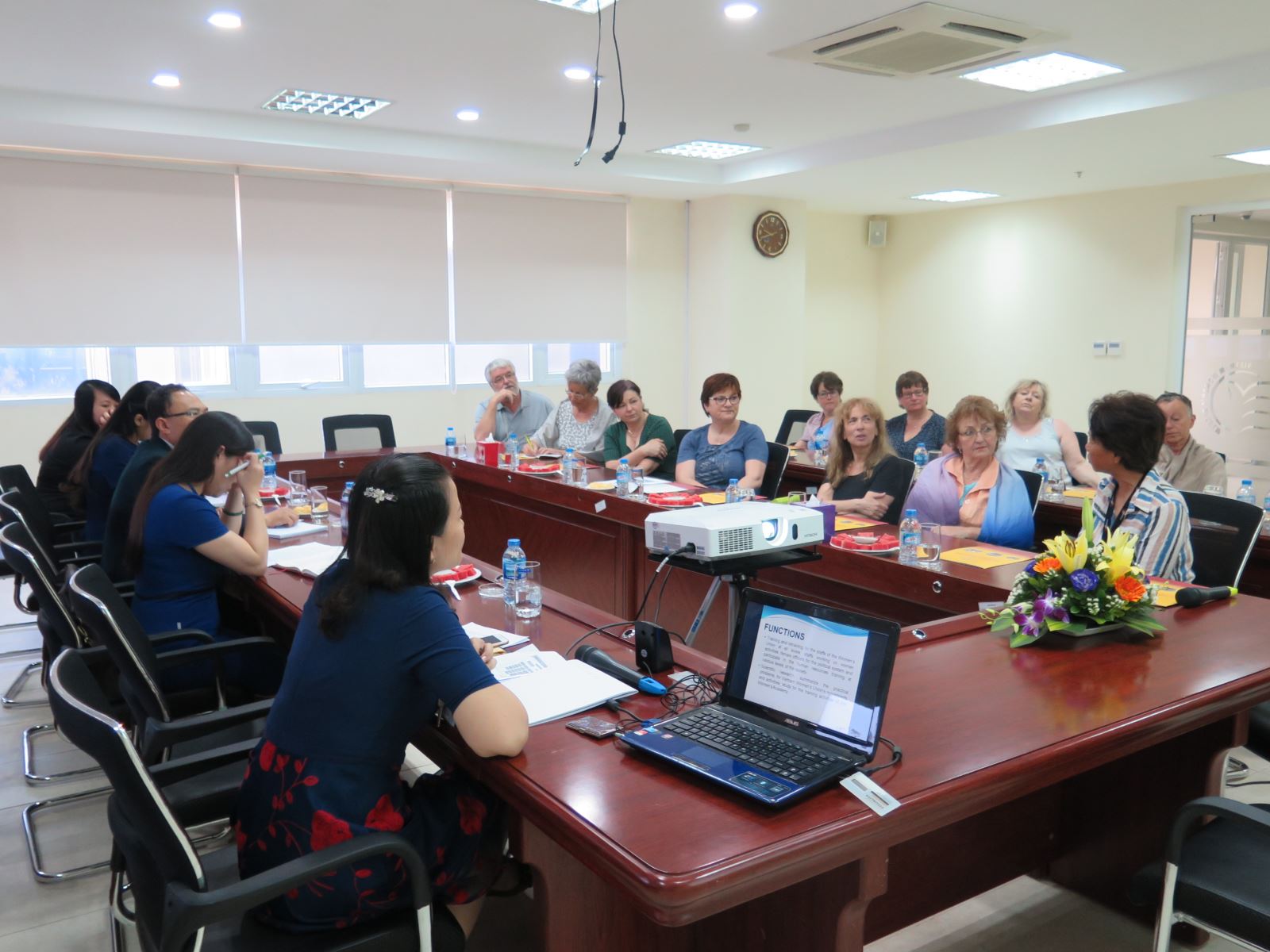 Đón tiếp đoàn là TS. Phạm Hồng Hải – Phó Trưởng khoa Quản trị kinh doanh, Ths. Hoàng Hương Thủy – Trưởng phòng Hợp tác Quốc tế và các chuyên viên, giảng viên thuộc các đơn vị của học viện. 11 vị khách đến từ Đức là các chuyên gia kinh tế, luật sư, doanh nhân, nhân viên công tác xã hội.