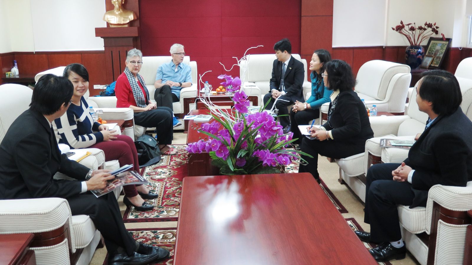 Tại buổi làm việc, Giám đốc Trần Quang Tiến đã giới thiệu những thông tin cơ bản về quá trình hình thành, lĩnh vực hoạt động, chiến lược phát triển của Học viện Phụ nữ Việt Nam sau đó tìm hiểu thêm về các lĩnh vực thế mạnh của các tình nguyện viên để định hướng cho các khoa chuyên môn về trọng tâm nội dung làm việc.