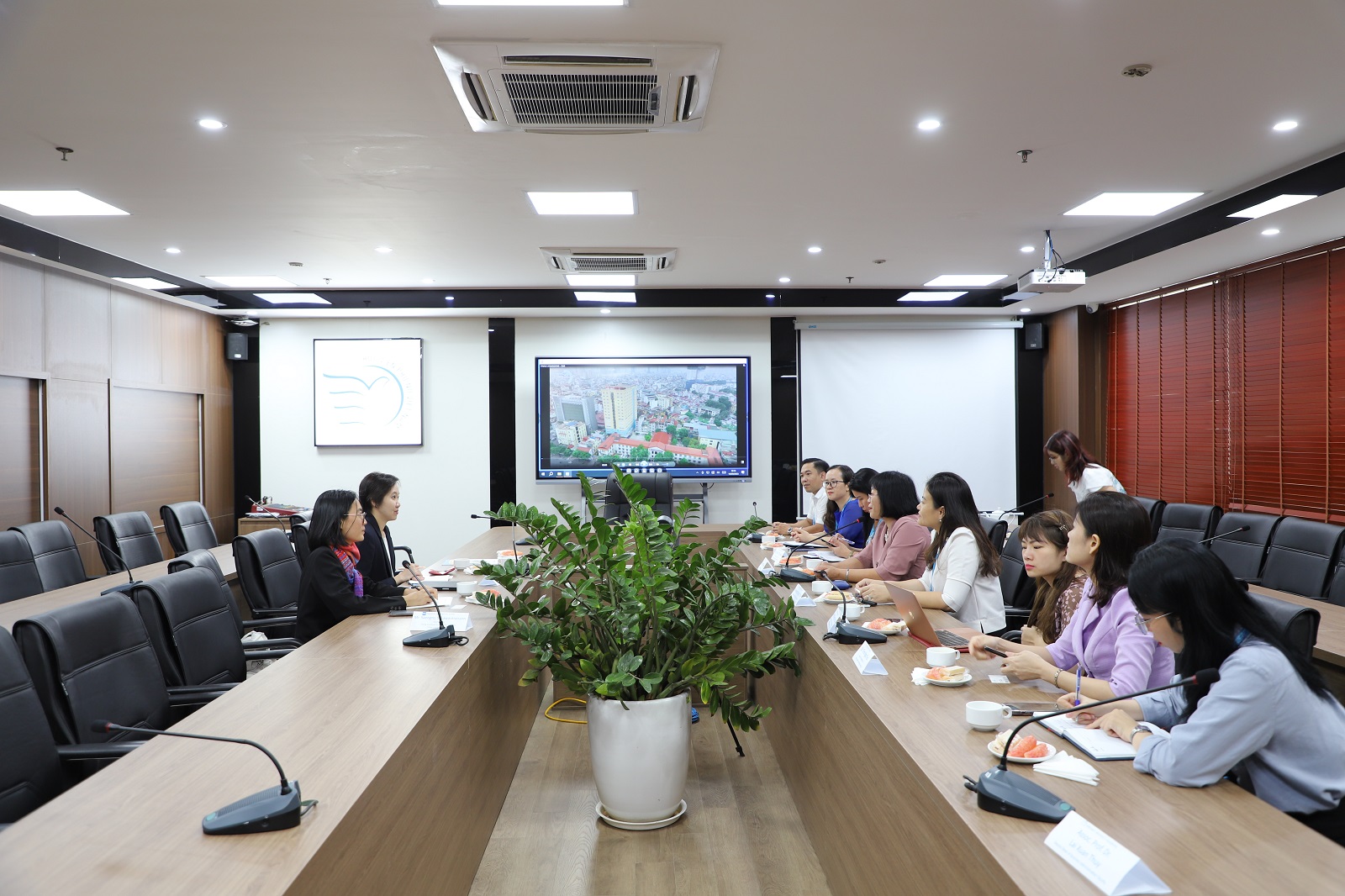 Đại diện Học viện, TS. Dương Kim Anh – Phó Giám đốc Học viện cùng lãnh đạo phòng Hợp tác Quốc tế & Quản lý khoa học, Viện Công nghệ thông tin, khoa Quản trị kinh doanh, khoa Giới và phát triển đã đón tiếp đoàn. Về phía đối tác có sự hiện diện của Bà Sattiya Langkhapin – trưởng đại diện đoàn EDC cùng cộng sự.