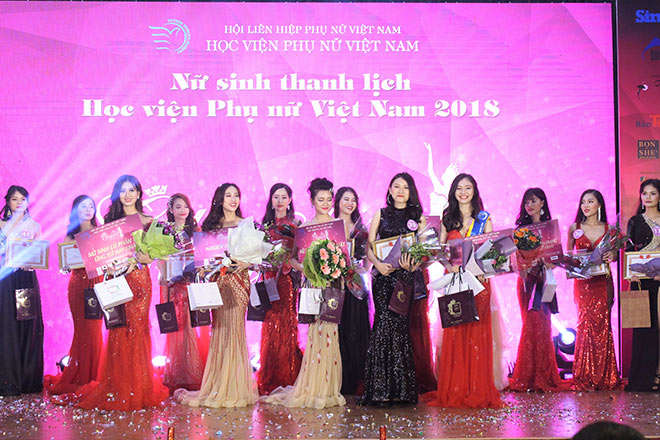 Phương Anh (váy đen) tại cuộc thi Sinh viên thanh lịch Học viện Phụ nữ Việt Nam