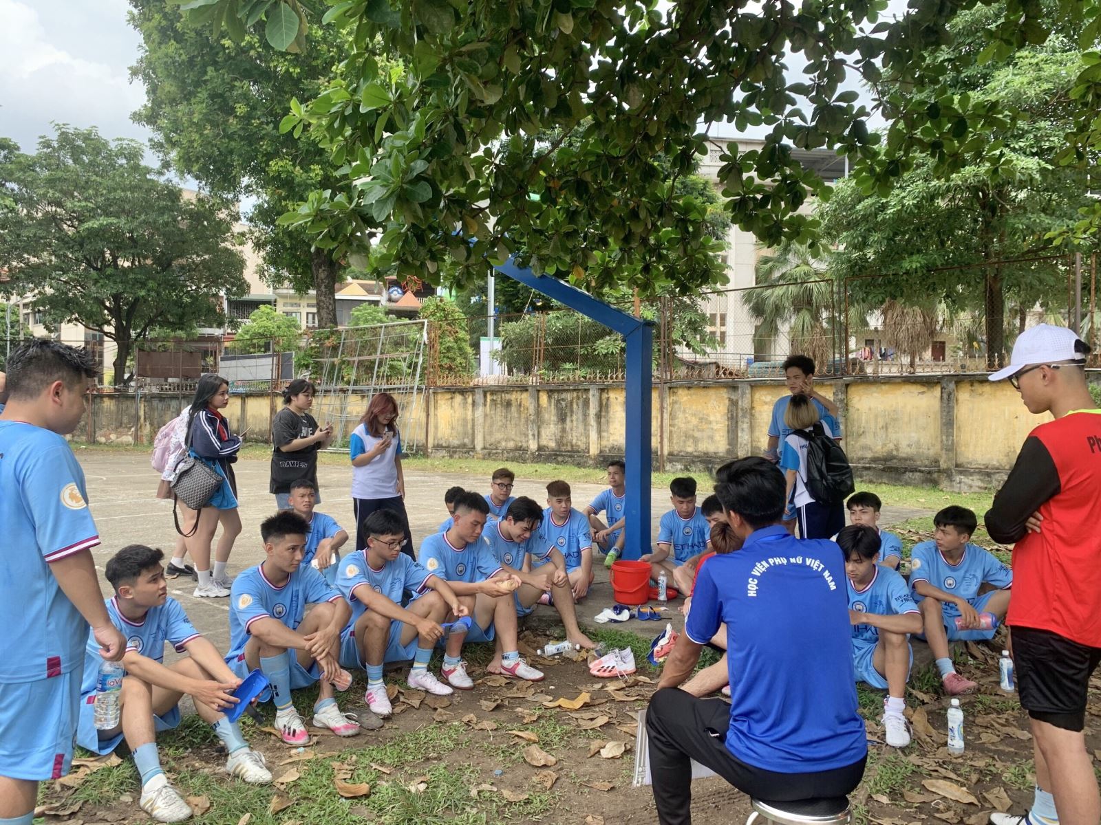 Huấn luyện viên và các cầu thủ của Học viện đang hội ý chiến thuật