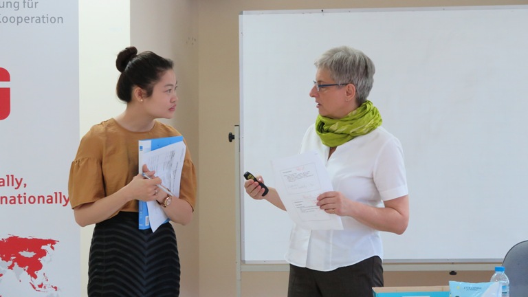 Giảng viên Anja Peters đã đem đến khóa tập huấn một không khí sôi nổi, thú vị và hiệu quả trong việc truyền đạt những phương pháp tiến bộ nhằm phát triển kỹ năng giảng dạy cho các học viên. Đặc biệt, bà Anja Peters mong muốn rằng, ngoài cách tiếp cận thông thường, khóa tập huấn sẽ mang đến cho người học sự khám phá mới, khác biệt về phương pháp giảng dạy hiệu quả. Điều này liên quan trực tiếp đến việc xác định đối tượng tiếp cận, cách dung hòa nhu cầu và kỳ vọng của học viên cũng như cách để huy động sự tham gia của tất cả mọi người trong giờ học. Đối với học viên, việc xác định động lực từ bên trong, áp dụng kinh nghiệm cuộc sống và kiến thức vào kinh nghiệm học tập, định hướng được mục tiêu, sự phù hợp của việc tham gia khóa đào tạo sẽ là những yếu tố quyết định hiệu quả của việc tham gia khóa học.