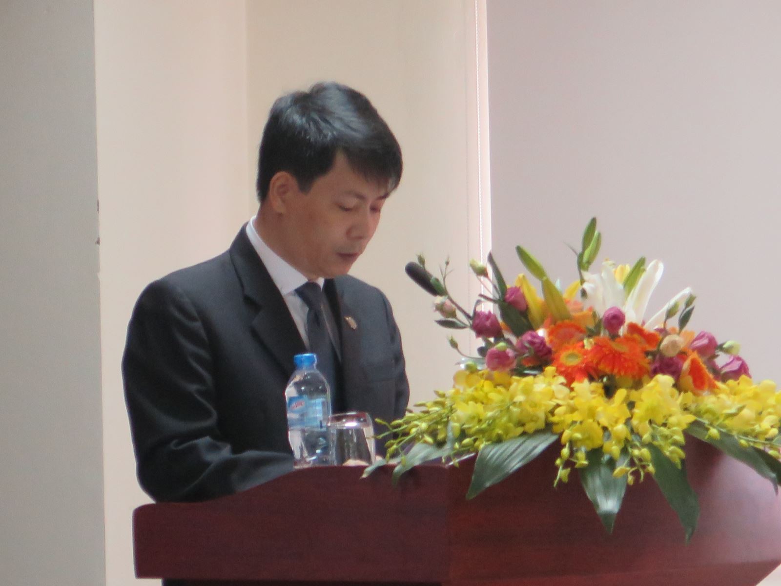 Ngay sau những tiết mục văn nghệ chào mừng của các em sinh viên, các chị cán bộ Hội Liên hiệp Phụ nữ Lào và giảng viên, viên chức Học viện, TS. Trần Quang Tiến đã đọc diễn văn ôn lại lịch sử ra đời của ngày hiến chương các nhà giáo quốc tế và Việt Nam. Đồng chí cũng đã nhấn mạnh: Hoạt động kỷ niệm ngày nhà giáo Việt Nam được tổ chức trong bối cảnh kinh tế – xã hội ở Việt Nam và thế giới có những biến đổi nhanh chóng và tác động sâu sắc đến tư tưởng, hành động của tất cả mọi người, trong đó có các thầy cô giáo và sinh viên Học viện, nhưng thầy và trò Học viện vẫn đạt được những kết quả rất tích cực, trên tất cả các mặt công tác trong năm học 2016-2017 và học kỳ I năm học 2017-2018. Thay mặt Ban Giám đốc, TS. Trần Quang Tiến mong muốn các thầy, cô giáo của Học viện luôn giữ được niềm đam mê, luôn cảm thấy hạnh phúc khi được giảng dạy; đồng thời cũng đề nghị các thầy, cô sẽ nỗ lực cùng với đội ngũ quản lý, viên chức và người lao động để đưa Học viện ngày càng phát triển, tạo ra một môi trường làm việc để mọi người đều cảm thấy hạnh phúc khi đến làm việc, học tập tại đây.