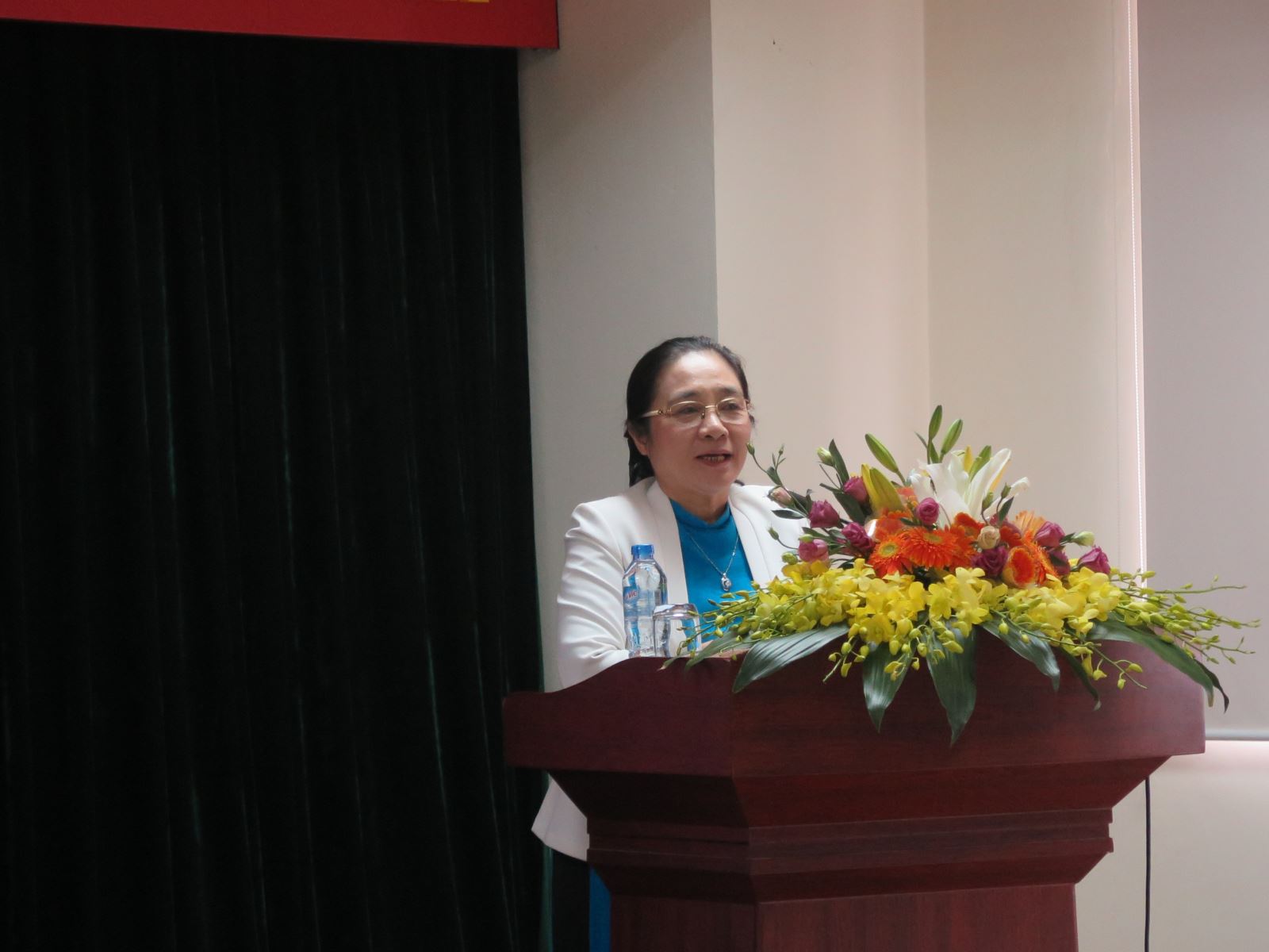 Thay mặt Đoàn Chủ tịch Hội Liên hiệp Phụ nữ Việt Nam, đồng chí Hoàng Thị Ái Nhiên đã gửi lời chúc mừng đến Ban Giám đốc, tập thể sư phạm và viên chức, người lao động của Học viện; bày tỏ sự vui mừng trước những kết quả mà thầy và trò Học viện đã đạt được trong những năm qua, đồng thời chia sẻ thêm mong muốn Học viện thực hiện tốt công tác dạy và học trong thời đại công nghệ 4.0. Mỗi người thầy hãy là một người người hướng dẫn cho sinh viên phương pháp học tập và cách lựa chọn kiến thức tích lũy cho việc nâng cao năng lực bản thân. Mỗi sinh viên phải tự học, tự lực, học cả nội dung và phương pháp để tự sáng tạo, biết cách cụ thể hóa kiến thức từ thày cô trở thành năng lực của bản thân như một Nhà Giáo lão thành đã nói “sinh viên đại học nghe nhiều tiếng trống để tự gõ lên tiếng trống của mình”. Đồng chí cũng hy vọng, Học viện đi sau tuy khó khăn nhưng có cơ hội để tận dụng những kinh nghiệm thành công và không vấp phải những điều chưa/không thành công của các cơ sở giáo dục đại học khác để phát triển Học viện như định hướng đã đề ra.