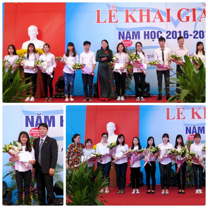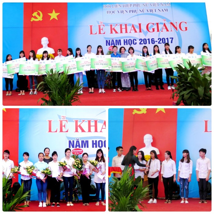 Đại diện các đơn vị tài trợ Công ty P&G Việt Nam; Ngân hàng Liên Việt; Công ty tổ chức sự kiện Hoàng Gia; các thầy cô giáo của học viện đã trao học bổng cho các sinh viên thủ khoa đại học, các sinh viên đạt thành tích cao trong học tập và rèn luyện.