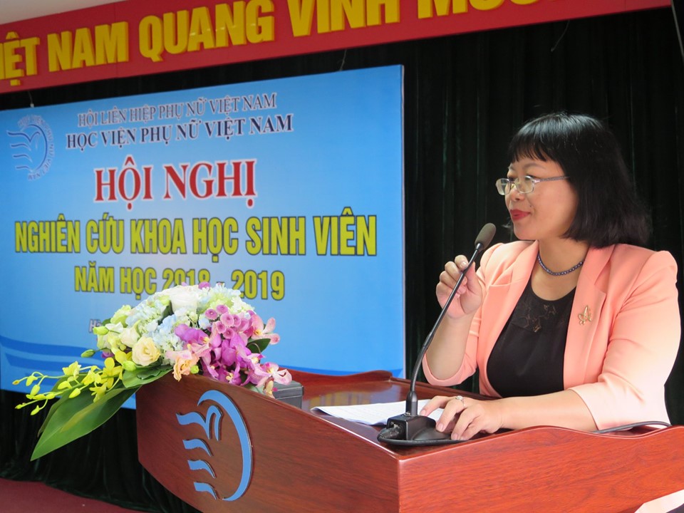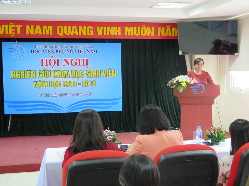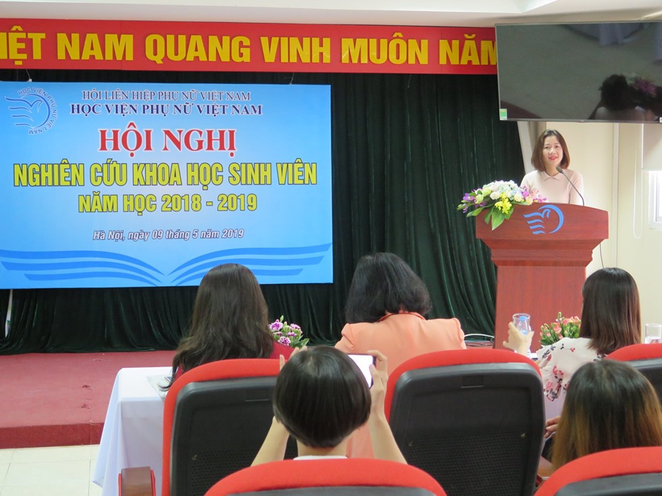 TS. Nguyễn Thị Thanh Thủy, Phó Viện trưởng Viện Nghiên cứu Phụ nữ đã trình bày báo cáo hoạt động nghiên cứu khoa học sinh viên năm học 2018 – 2019.