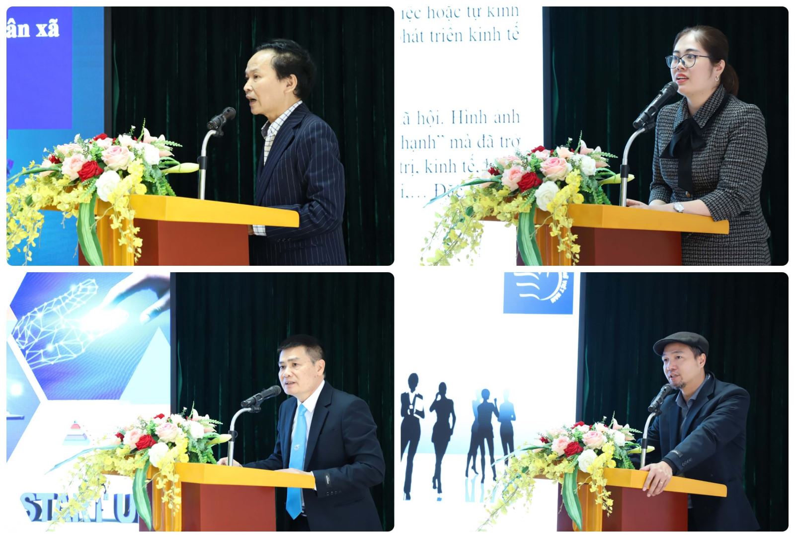 Cụ thể, các tác giả đã trao đổi về những vấn đề trọng tâm liên quan đến thực trạng và tiềm năng phụ nữ khởi nghiệp trong thời đại công nghệ, chuyển đổi số hiện nay: Đề xuất mô hình khởi nghiệp tinh gọn dành cho phụ nữ khởi nghiệp và nữ doanh nhân (TS. Nguyễn Hùng Cường, Trưởng khoa QTKD, Học viện Phụ nữ Việt Nam); Các yếu tố ảnh hưởng tới ý định khởi nghiệp của phụ nữ khu vực Đông Bắc, Việt Nam (TS. Đào Thị Hương, Trường ĐH Kinh tế và QTKD Đại học Thái Nguyên); Chính sách hỗ trợ doanh nghiệp nhỏ và vừa do phụ nữ làm chủ trên địa bàn tỉnh Đắk Lắk nhằm đẩy mạnh đổi mới sáng tạo (ThS. Lê Thị Hồng Gái, Viện Khoa học xã hội, vùng Tây Nguyên); Trình độ dân trí tài chính của phụ nữ Việt Nam: vai trò của các tác nhân xã hội hóa tài chính (ThS. Lê Văn Hinh, Ngân hàng Nhà nước Việt Nam); Các nhân tố tác động đến ý định và sự sẵn sàng khởi nghiệp của nữ sinh viên Học viện Phụ nữ Việt Nam (PGS.TS. Lại Xuân Thủy, Phó trưởng khoa QTKD, Học viện Phụ nữ Việt Nam).
