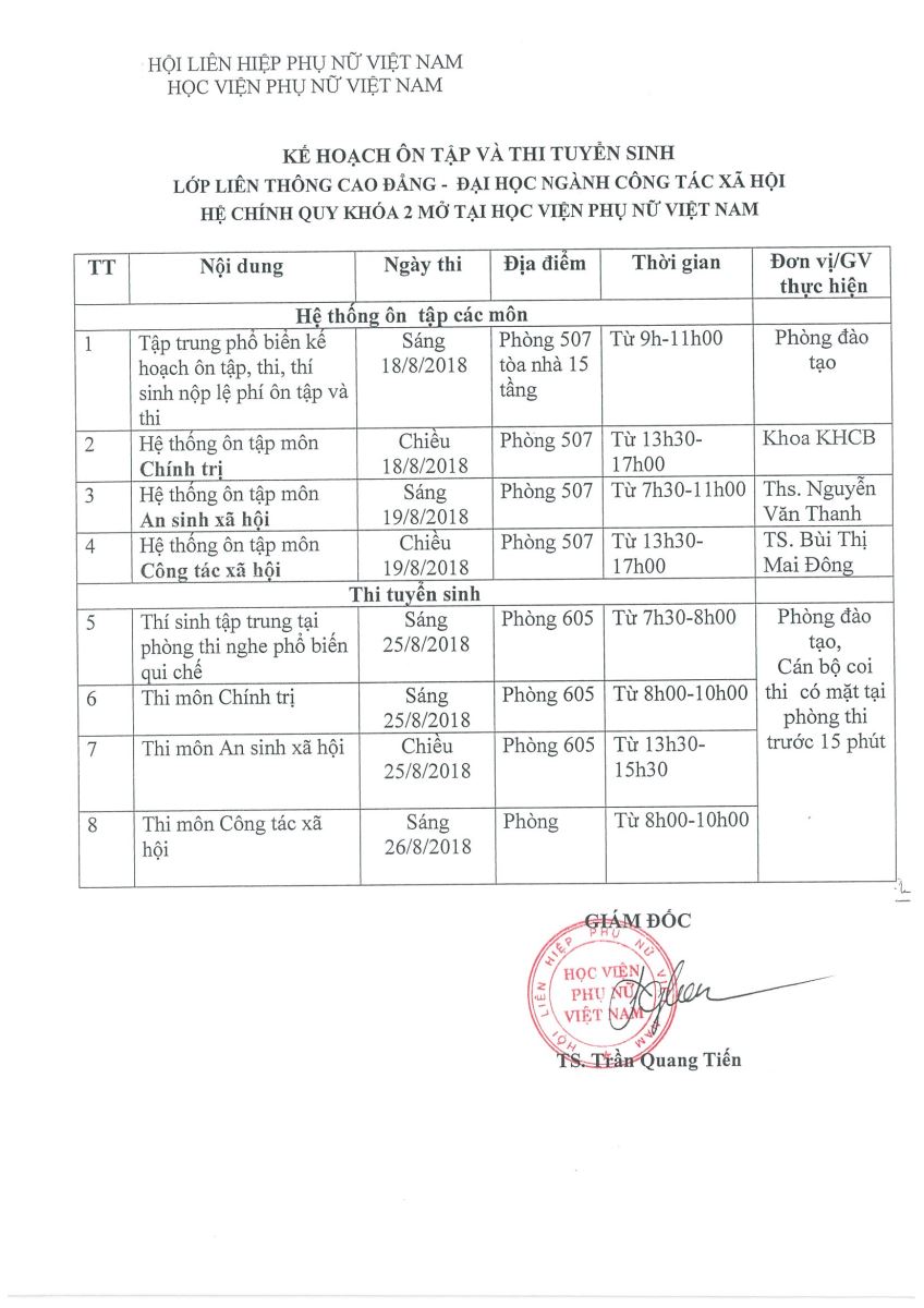 Kế hoạch ôn tập và thi tuyển sinh lớp liên thông Cao đẳng – Đại học ngành CTXH