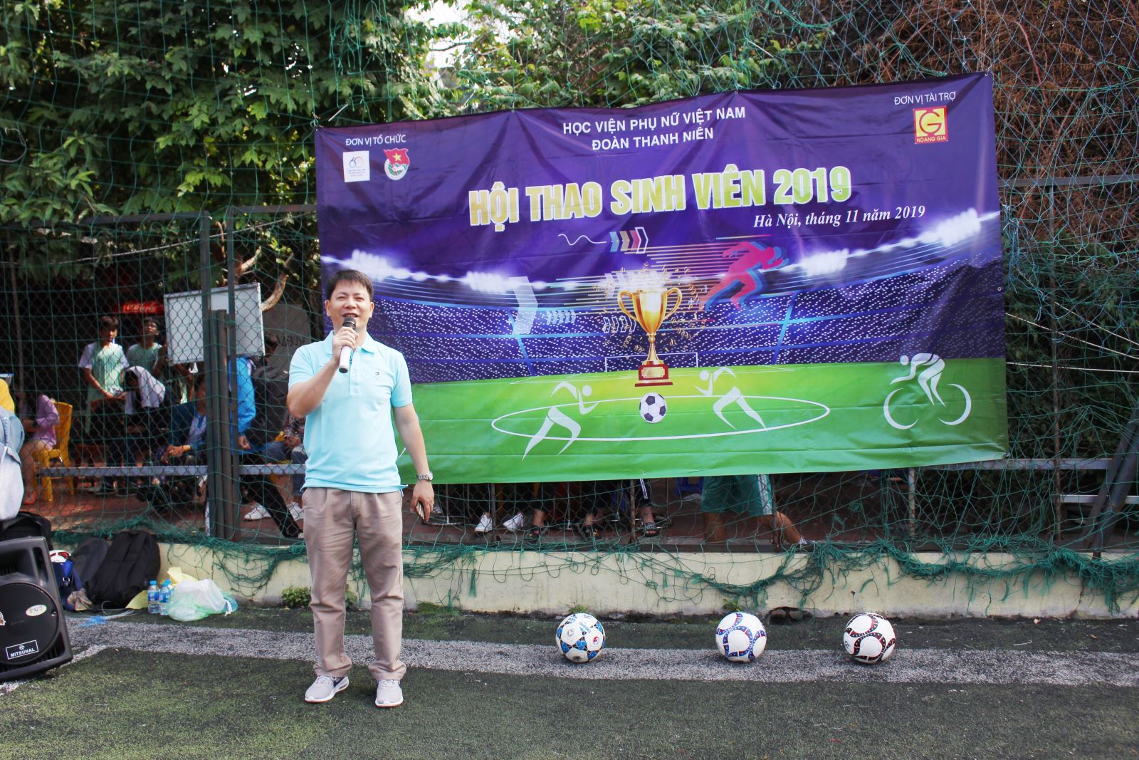 Phát biểu tại lễ khai mạc, Giám đốc Trần Quang Tiến biểu dương tinh thần nâng cao sức khỏe thể chất và tinh thần của sinh viên Học viện Phụ nữ Việt Nam. Hội thao sinh viên 2019 là một hoạt động quy mô và hết sức ý nghĩa trong bối cảnh hướng tới kỉ niệm 60 năm truyền thống vẻ vang của Học viện. Giám đốc hi vọng các chi đoàn sẽ cùng thi đấu nhiệt tình, thân thiện thể hiện được trí tuệ, sức mạnh thể chất, sức mạnh tinh thần của tuổi trẻ học viện; Đội trọng tài làm việc công bằng, minh bạch để Hội thao được tổ chức thành công và để lại dấu ấn tốt đẹp trong lòng mọi người.