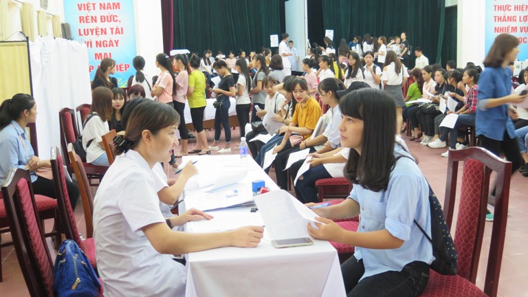 Tại buổi kiểm tra sức khỏe, sinh viên được nhận phiếu khám sức khoẻ và điền đầy đủ thông tin cá nhân của mình trước khi đến các khu vực khám. Mỗi sinh viên xếp hàng lần lượt để được bác sĩ kiểm tra chiều cao, cân nặng, thị lực, tai mũi họng, xét nghiệm máu, khám nội – ngoại khoa, da liễu, điện tim.