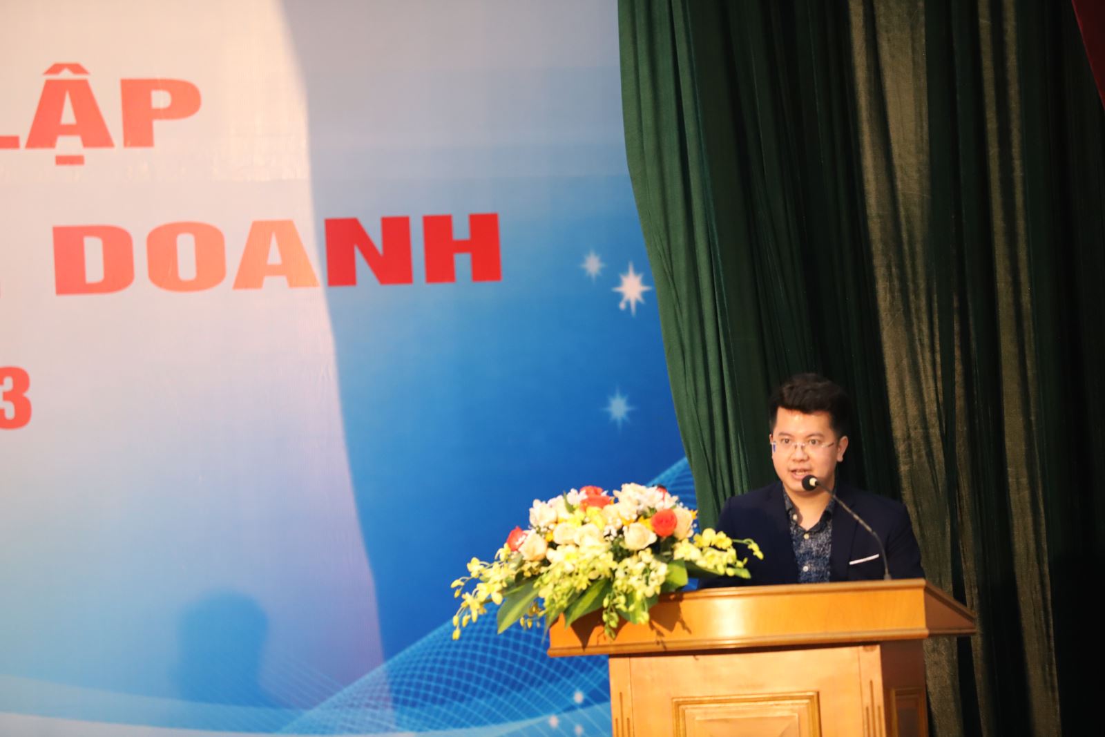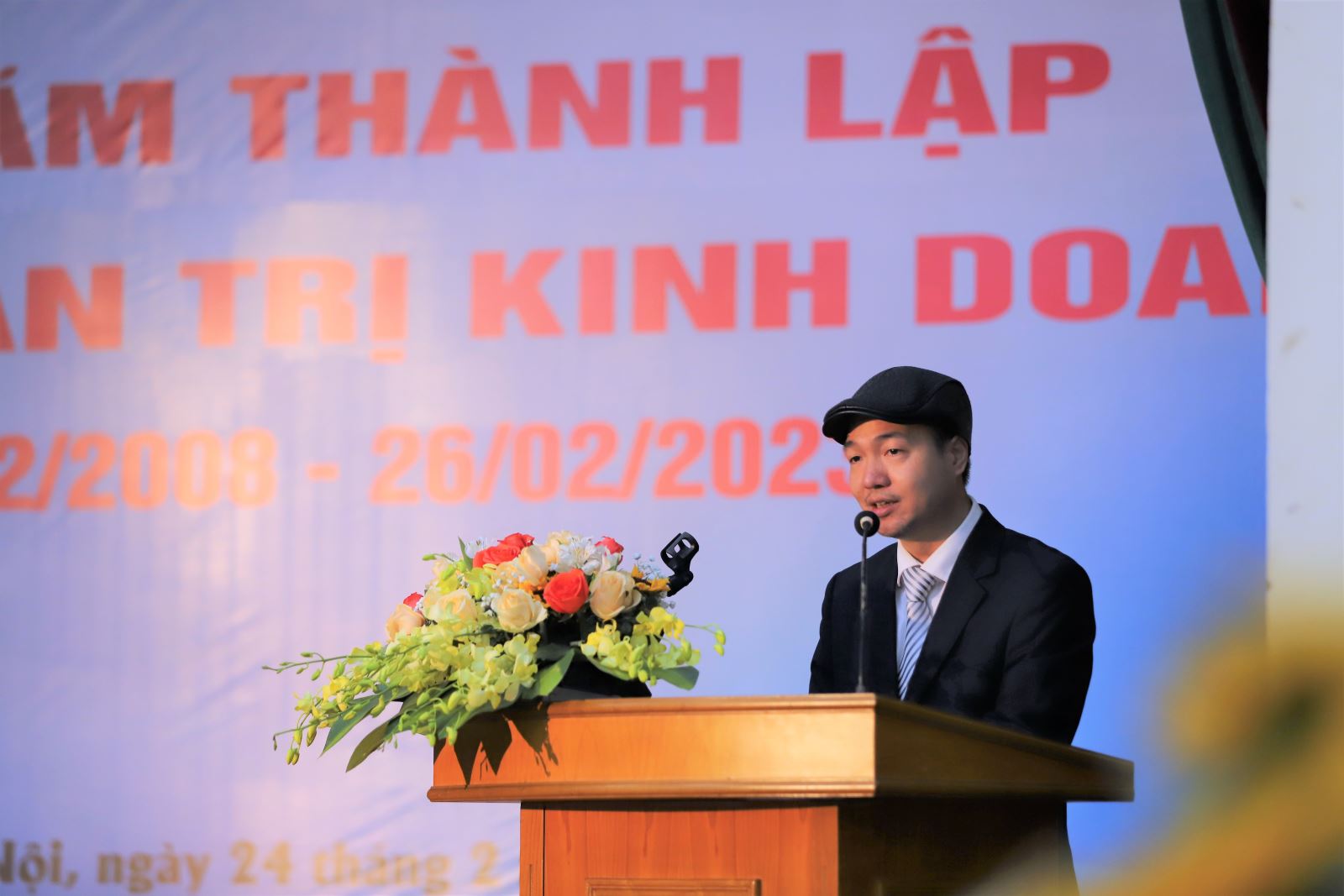 Bạn Nguyễn Vũ Hoàng Dương – Cựu SV khóa 1, khoa QTKD phát biểu chúc mừng và tri ân thầy cô