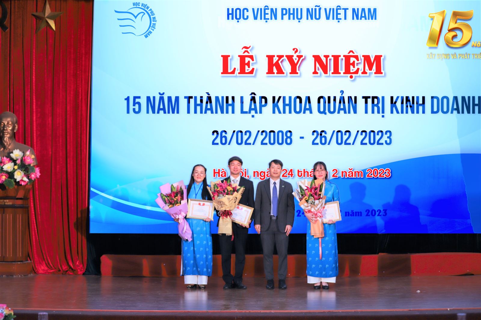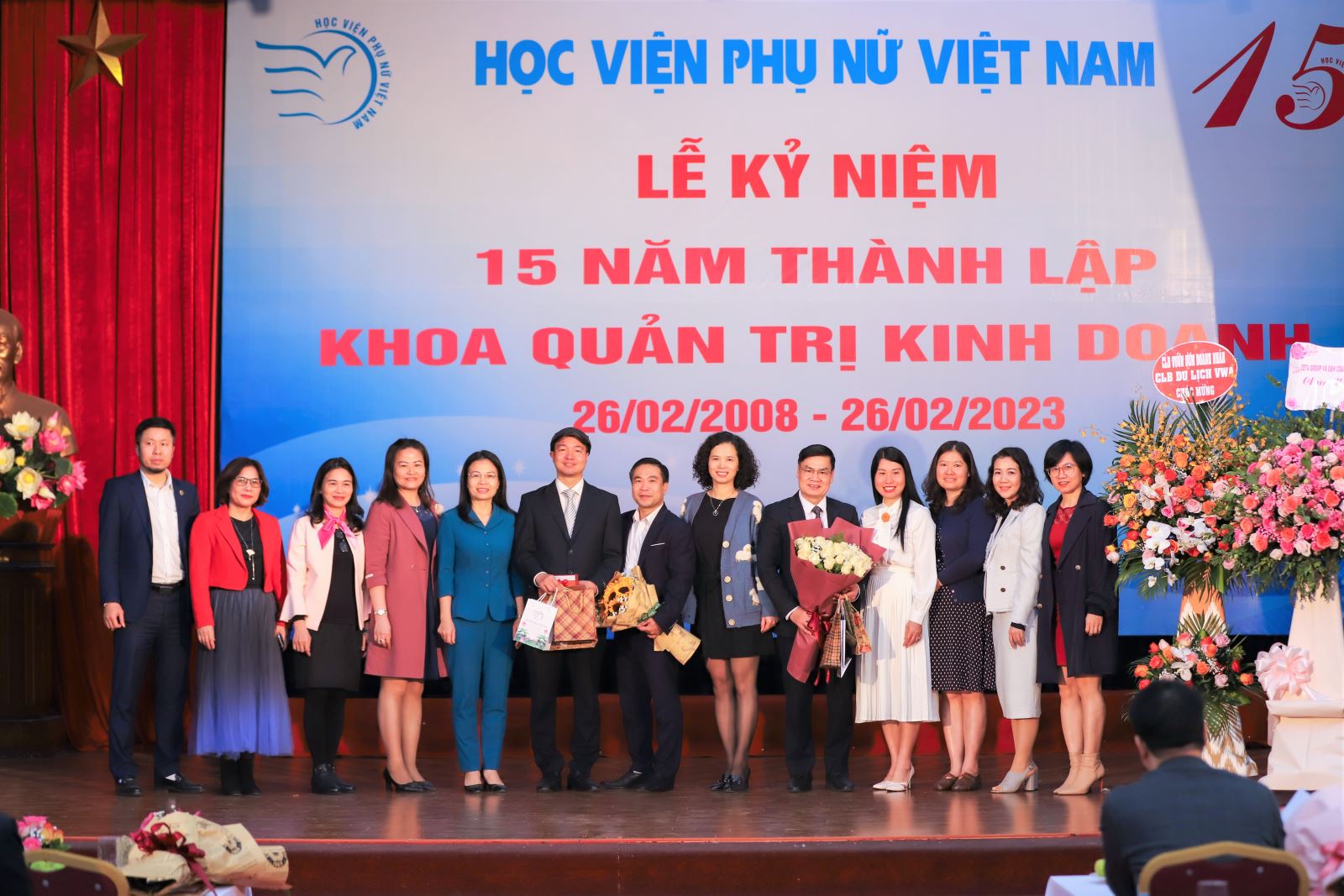 Buổi lễ là một dấu ấn đặc biệt ghi dấu chặng đường hình thành, phát triển và không ngừng vươn xa của khoa Quản trị kinh doanh, Học viện Phụ nữ Việt Nam. Đông đảo các vị khách quý, các đối tác trong và ngoài nước, các trường đại học, các sinh viên, học viên từ nhiều khóa đào tạo của khoa Quản trị kinh doanh đã có mặt để chúc mừng và cùng ôn lại những kỉ niệm trong suốt 15 năm gắn bó, xây dựng khoa.