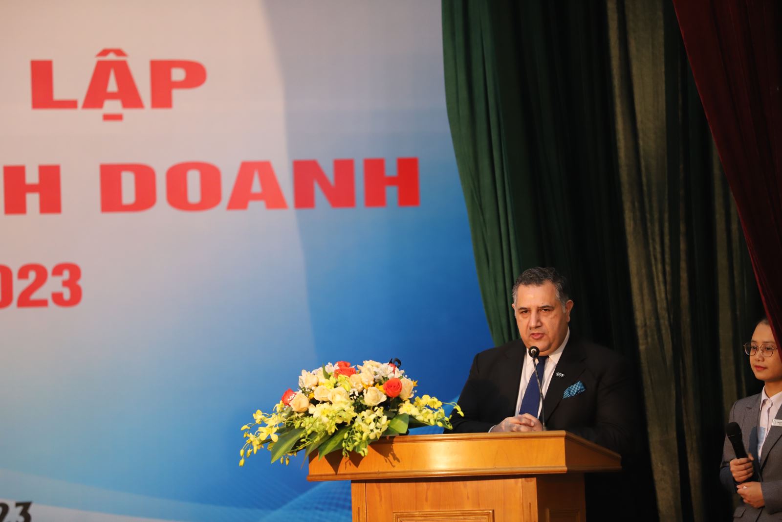 Ông Vanayak Razdan – Giám đốc khối lưu trú FLC Hạ Long, Quảng Ninh đại diện các đối tác của khoa phát biểu chúc mừng
