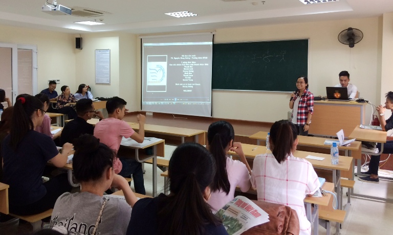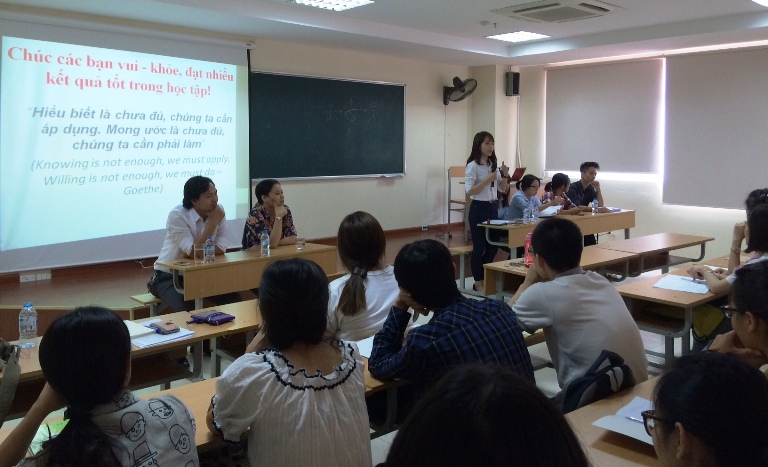 Từ cấp phổ thông lên đại học, các tân sinh viên không khỏi bỡ ngỡ với phương pháp học hoàn toàn mới trong trường Đại học. Nhằm giúp các tân sinh viên hóa giải khó khăn này, TS. Phạm Hồng Hải – Phó Khoa QTKD đã giới thiệu với các tân sinh viên về phương pháp học tập hiệu quả trong trường đại học. TS. Phạm Hồng Hải nhấn mạnh về phương pháp học chủ động, tự học, theo đó lấy người học làm trọng tâm và các giảng viên chỉ đóng vai trò người hướng dẫn. Để học tập hiệu quả, ngoài việc nghe giảng, ghi chép đầy đủ để ghi nhớ bài ngay trên lớp, sinh viên cần dành nhiều thời gian tự học, nghiên cứu chuyên sâu, đồng thời nên liên tục trau dồi, học tập các kỹ năng và kinh nghiệm trong thực tế. Kết thúc phần trình bày, TS. Phạm Hồng Hải đã khơi lên ngọn lửa động lực học tập của các tân sinh viên với câu danh ngôn “Hiểu biết là chưa đủ, chúng ta cần áp dụng. Mong ước là chưa đủ, chúng ta cần phải làm.”