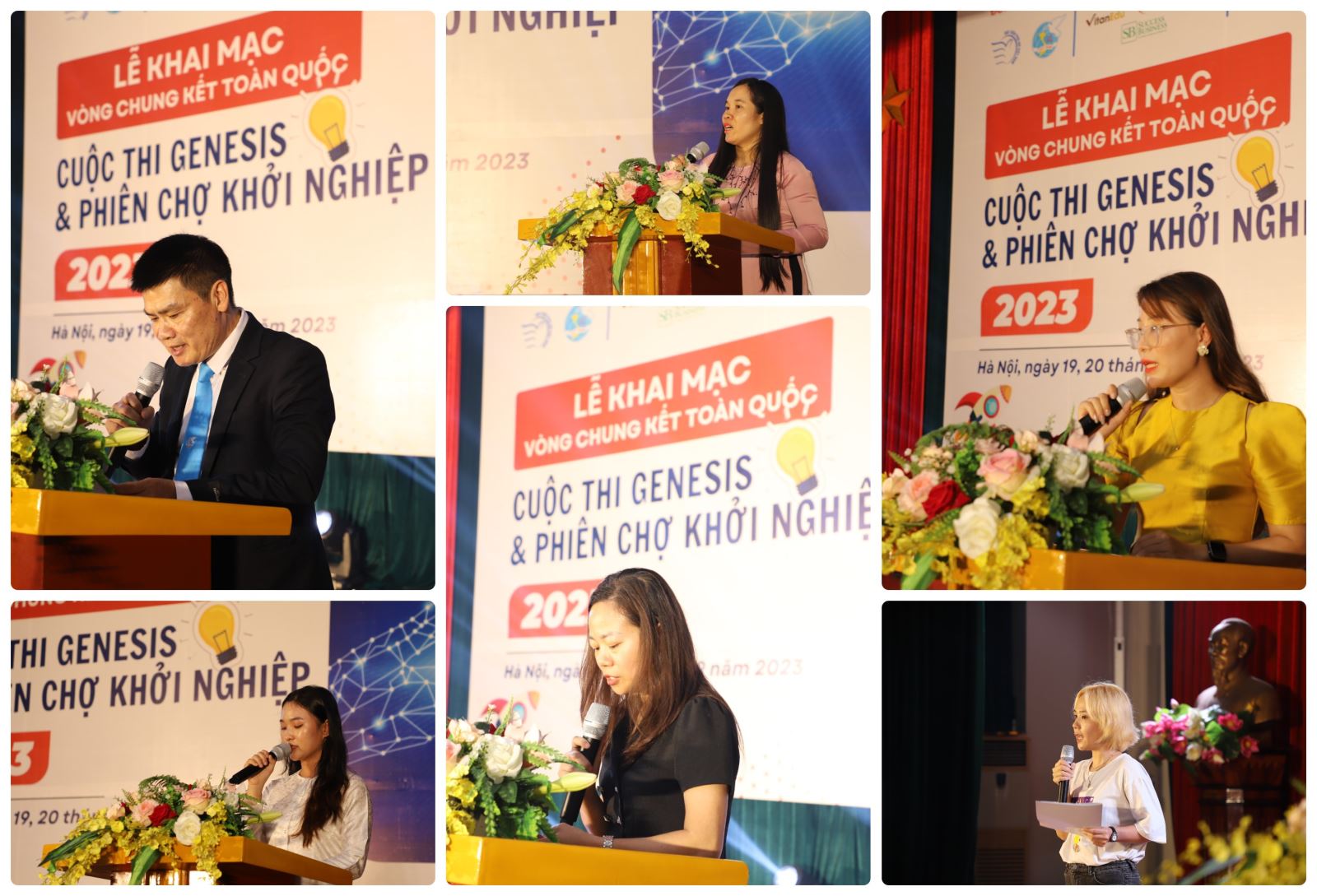 PGS.TS. Lại Xuân Thủy – Phó trưởng Khoa QTKD, Phó trưởng ban Tổ chức sẽ lên sân khấu công bố Quyết định thành lập Ban Giám Khảo Vòng chung kết toàn quốc; Đại diện các đơn vị tài trợ, bà Đàm Việt Anh – Giám đốc Marketing Công ty cổ phần Tập đoàn 911; Cô Trần Thị Thúy Hồng – Giảng viên Học viện Công nghệ bưu chính viễn thông đại diện 12 trường có đội dự thi; Đại diện Ban Giám khảo cuộc thi; Thí sinh thuộc đội May Together (Đại học Hùng Vương – Tp. Hồ Chí Minh) đại diện 12 đội dự thi; Bà Trần Thị Ngọc Lan – Giám đốc Công ty trách nhiệm hữu hạn trà AnTo đại diện các doanh nghiệp tham gia Phiên chợ khởi nghiệp 2023 đã chia sẻ, phát biểu tại lễ khai mạc trên tinh thần ủng hộ, nhiệt huyết và gửi gắm nhiều hi vọng vào những ý tưởng khởi nghiệp sáng tạo của các đội dự thi xuất sắc tại Vòng chung kết.