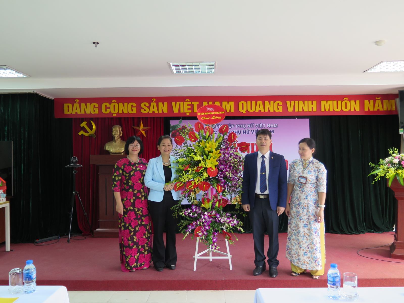 Thay mặt Đoàn Chủ tịch Hội Liên hiệp Phụ nữ Việt Nam, đồng chí Trần Thị Hương, Phó Chủ tịch Hội Liên hiệp Phụ nữ Việt Nam, Chủ tịch Hội đồng Học viện đã tặng hoa chúc mừng Học viện.