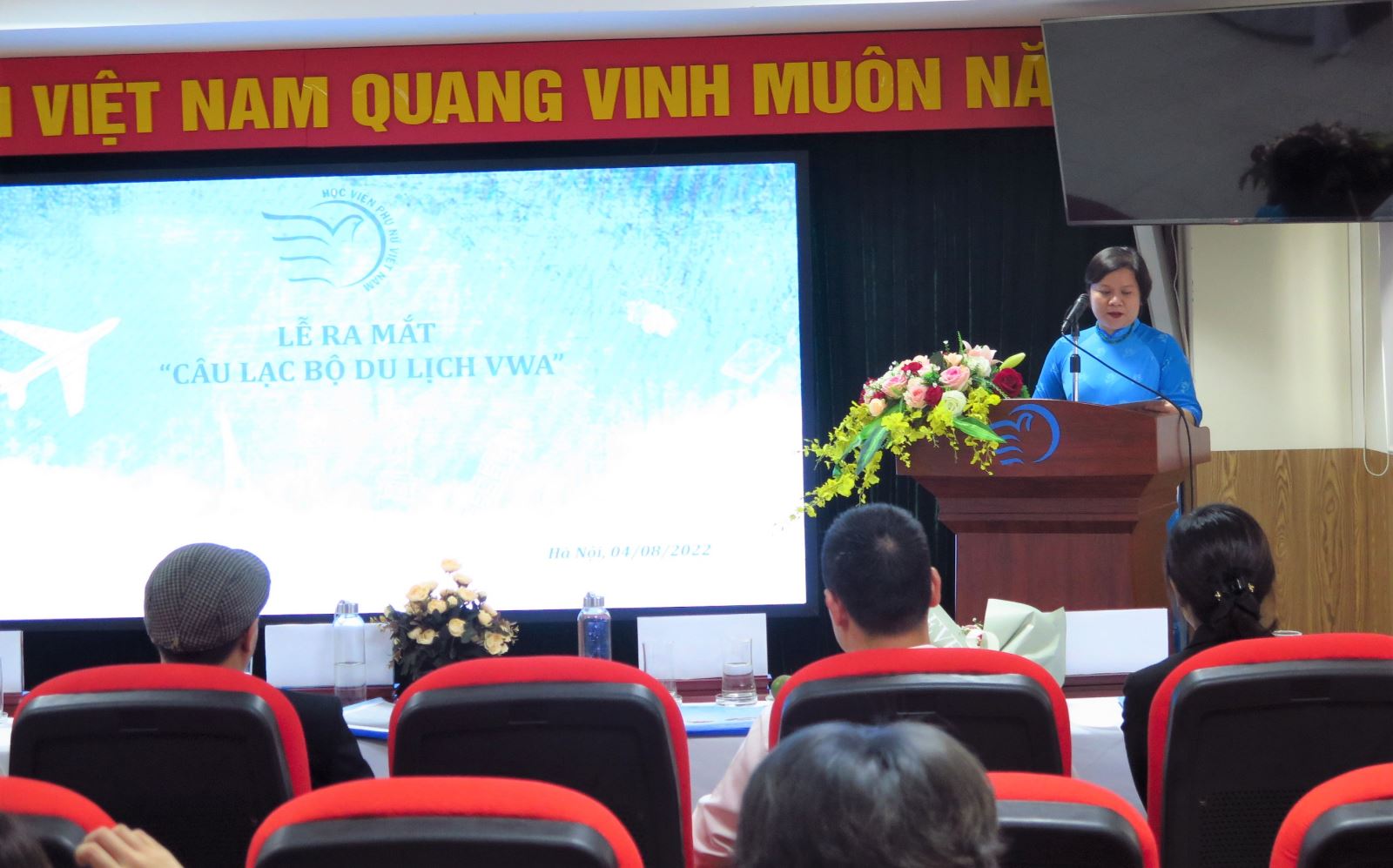 Tại lễ ra mắt, TS. Nguyễn Hùng Cường – Trưởng Khoa Quản trị kinh doanh, Học viện Phụ nữ Việt Nam đã công bố quyết định thành lập CLB Du lịch và trao thẻ thành viên cho Ban chủ nhiệm câu lạc bộ.