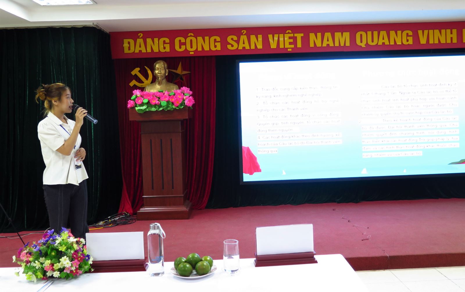 Sinh viên Ngô Minh Thương – SV K7 ngành Quản trị Du lịch và lữ hành, Chủ nhiệm CLB Du lịch đã chia sẻ mục đích, ý nghĩa thành lập, phương thức hoạt động và kế hoạch hoạt động của CLB.