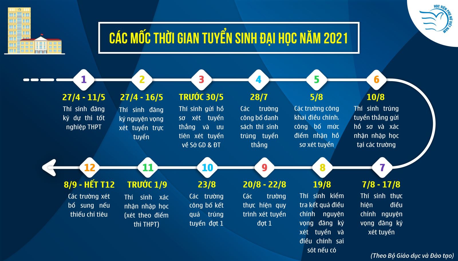 Năm 2021, Học viện tuyển sinh các khối ngành A00 (Toán, Lý, Hóa), A01 (Toán, Lý, Tiếng Anh), C00 (Văn, Sử, Địa), D01 (Toán, Văn, Tiếng Anh). Riêng ngành Truyền thông đa phương tiện, thí sinh có thể xét tuyển theo tổ hợp của khối V00 (Toán, Lý, Vẽ) và H1 (Toán, Văn, Vẽ).