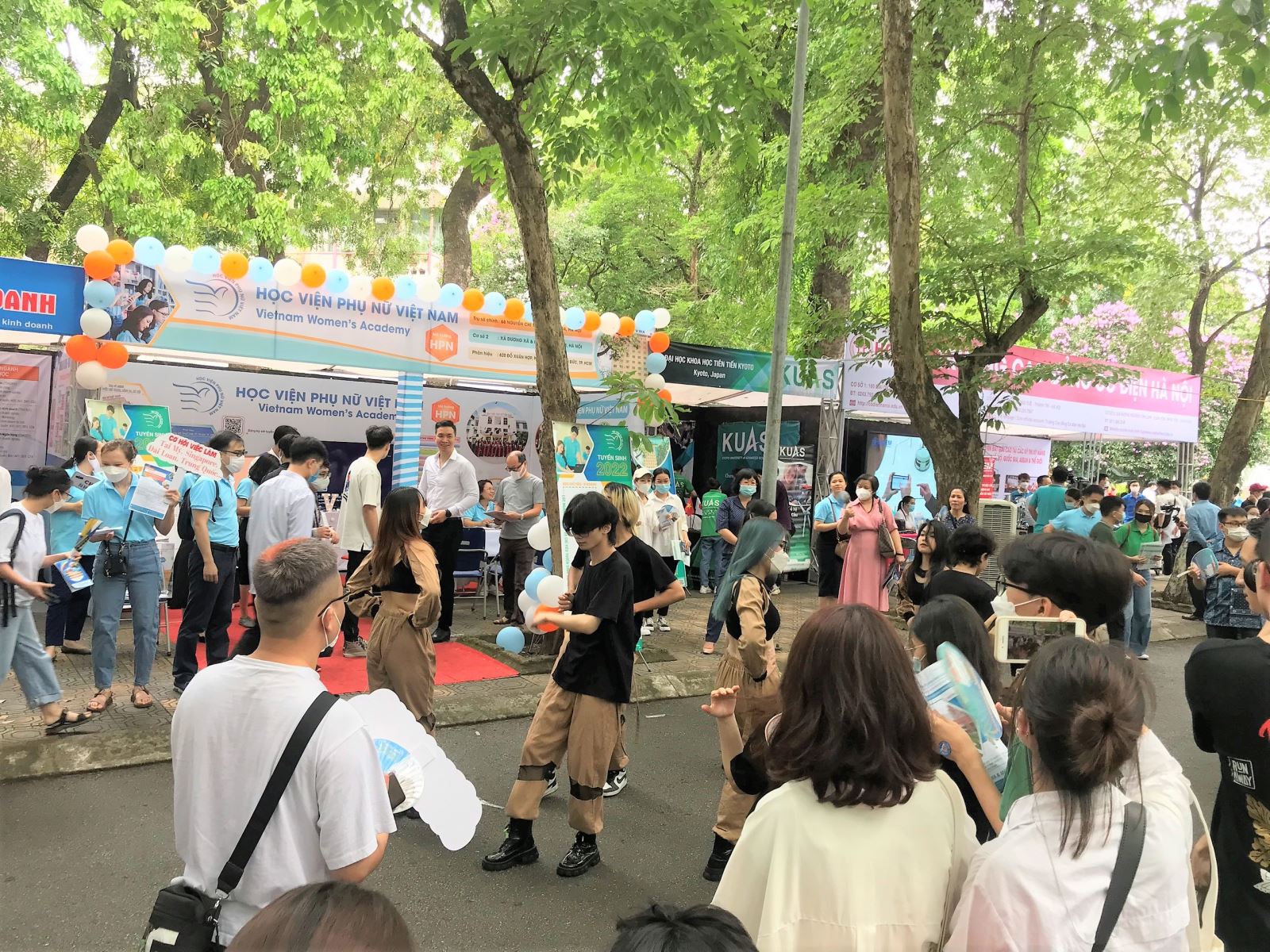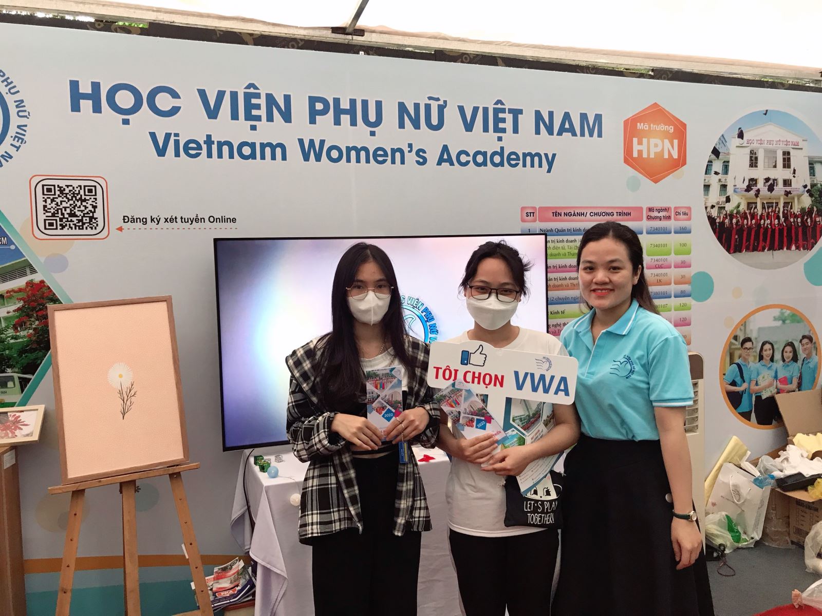 Học viện Phụ nữ Việt Nam đăng ký tham gia với 2 gian hàng tại ngày hội tuyển sinh. Các thí sinh và phụ huynh sẽ được các giảng viên, sinh viên của Học viện đón tiếp và tư vấn chi tiết về 11 ngành đào tạo, về các hình thức đào tạo (thạc sĩ, đại học chính quy, liên thông, liên kết quốc tế, chất lượng cao, song ngành) của Học viện. Những chính sách ưu đãi về học phí, các chương trình học bổng, du học, chương trình ngoại khóa và các câu lạc bộ dành cho sinh viên…