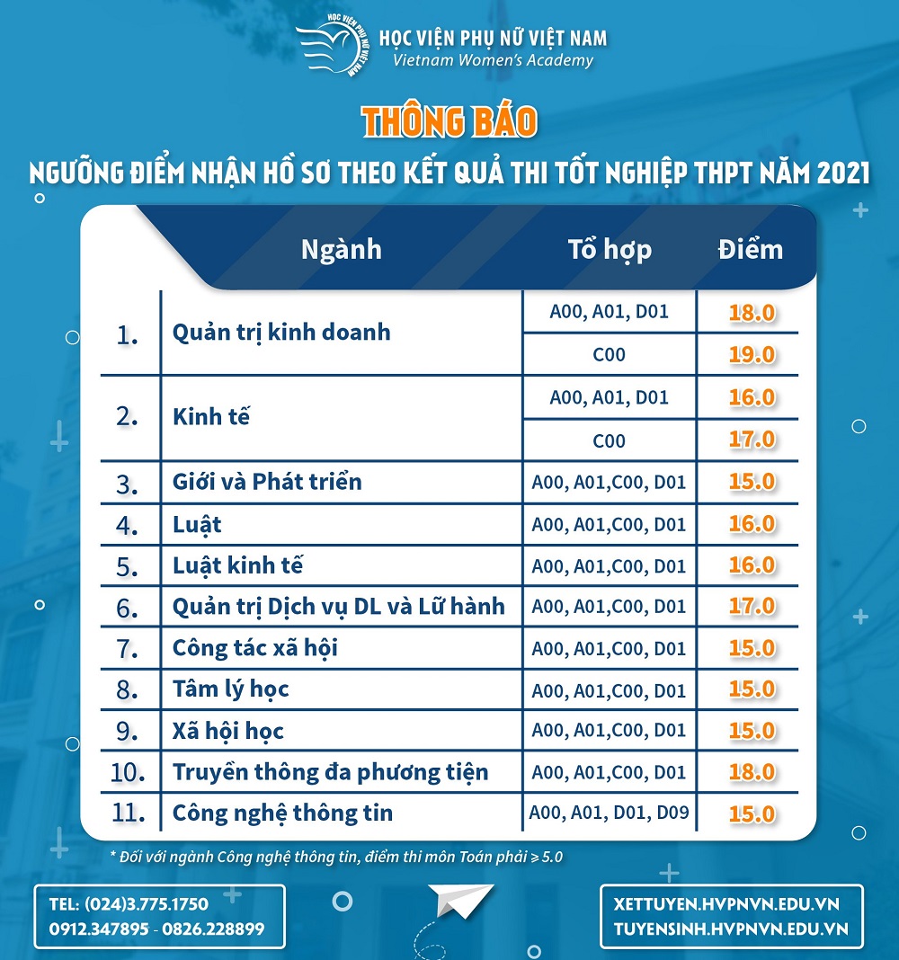 Website: www.tuyensinh.hvpnvn.edu.vn; Email: tuyensinh@vwa.edu.vn;