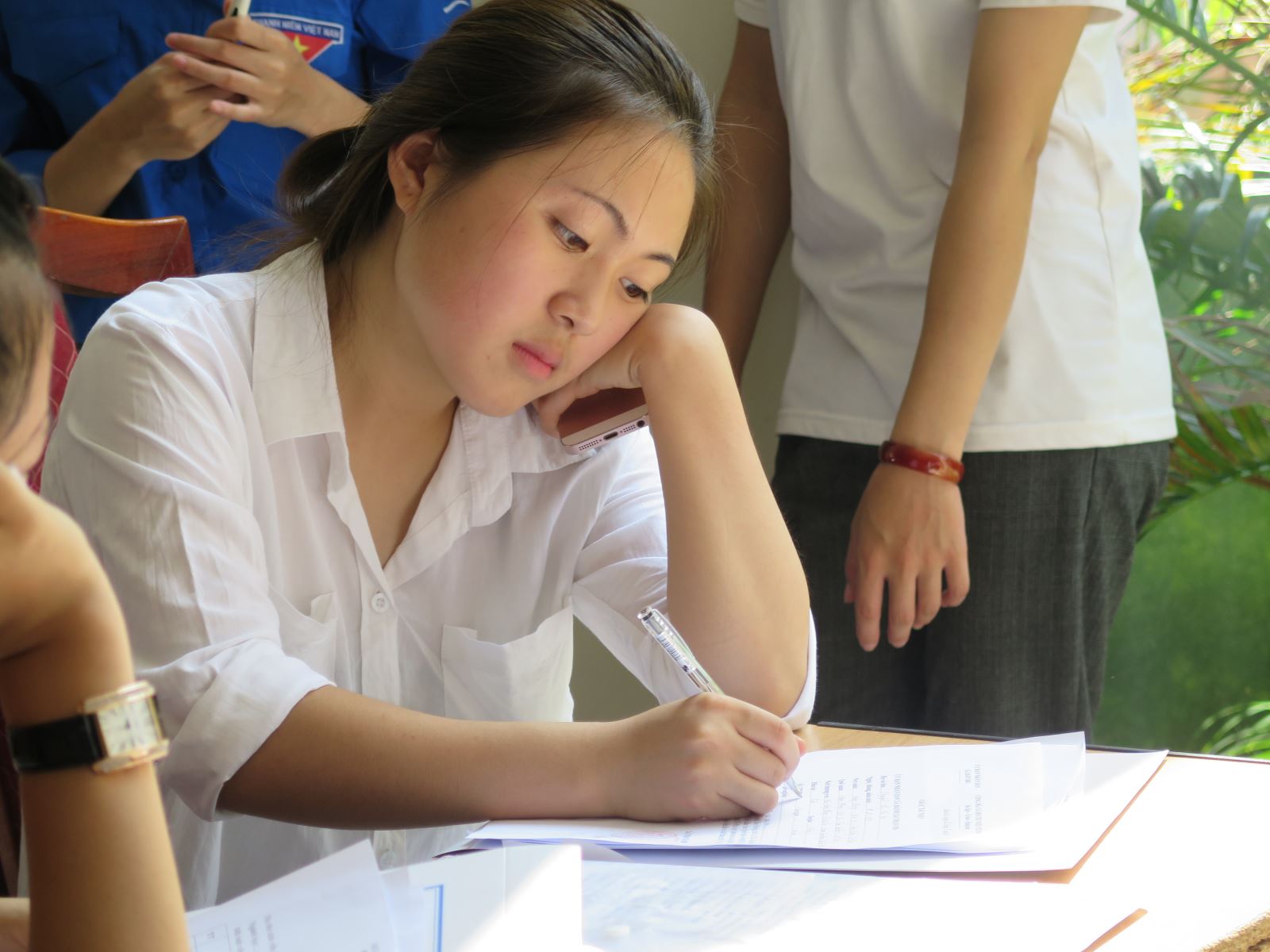 Bạn Nguyễn Thu Hà, K5 Luật A cho biết: Lần đầu đến học viện em thực sự hồi hộp. Cảm giác mình vẫn còn nhỏ bé và chưa trửo thành sinh viên đại học. Có nhiều phần trong phiếu thông tin em cũng chưa biết phải ghi thế nào nhưng may là được các anh chị tình nguyện viên và thầy cô hướng dẫn nhiệt tình. Em hi vọng mình sẽ nhanh chóng quen với môi trường này.