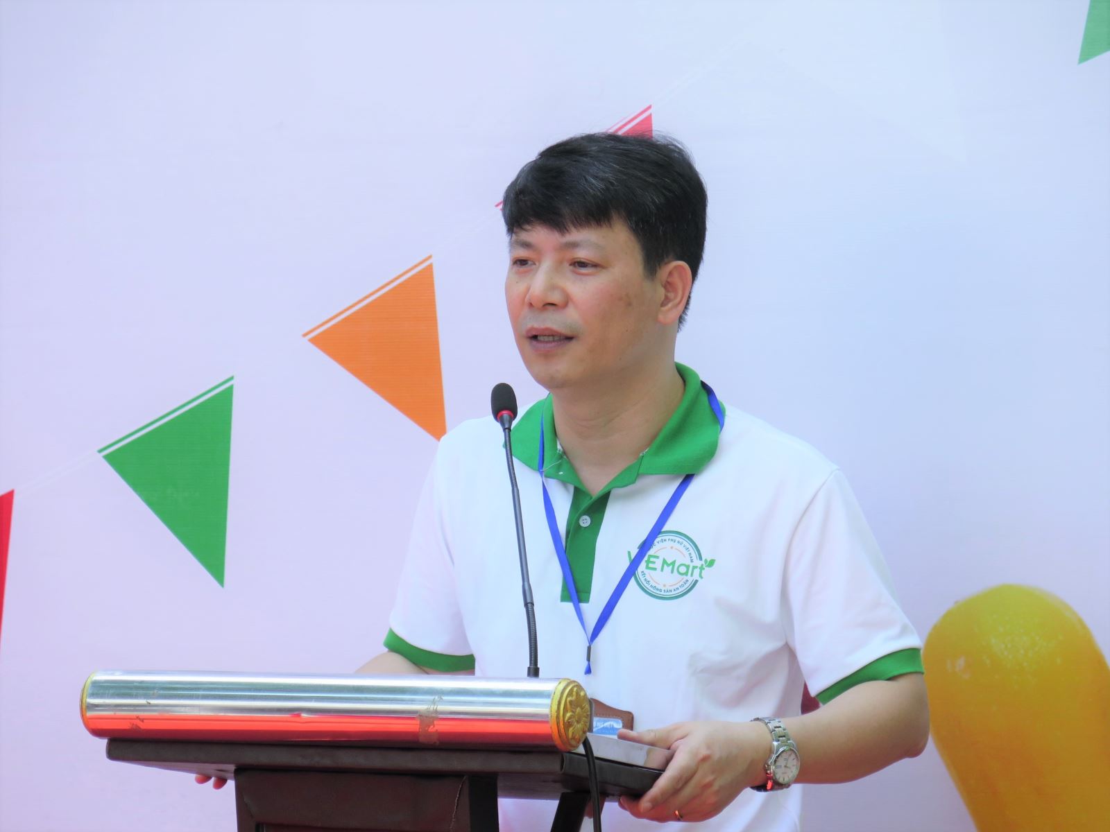 Ông Trần Quang Tiến, Giám đốc Học viện Phụ nữ Việt Nam phát biểu khai trương cửa hàng WEmart