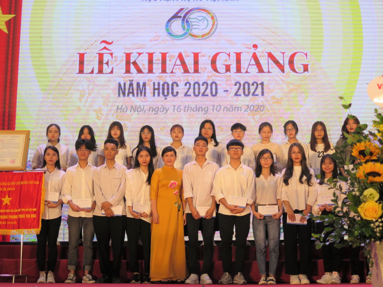 Chủ tịch Hội LHPN Việt Nam và Thứ trưởng Bộ GD & ĐT trao học bổng cho các tân cử nhân của HV