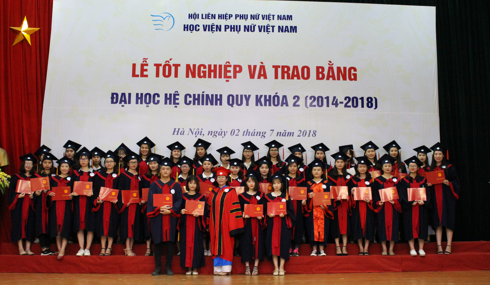 Bà Trần Thị Hương, Phó Chủ tịch Hội LHPN Việt Nam trao bằng tốt nghiệp loại Giỏi cho 13 cử nhân