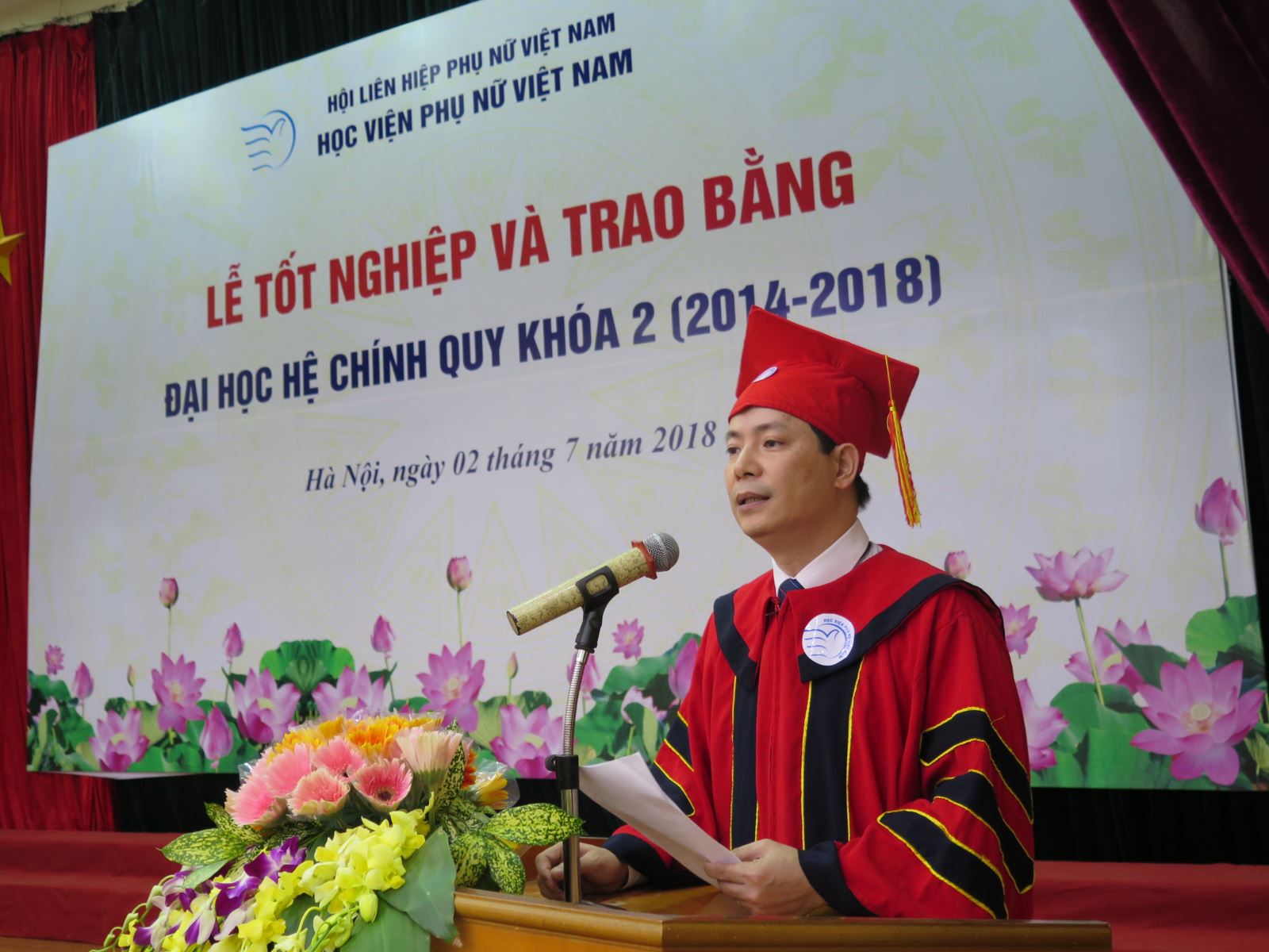 Giám đốc Trần Quang Tiến phát biểu chúc mừng các tân cử nhân