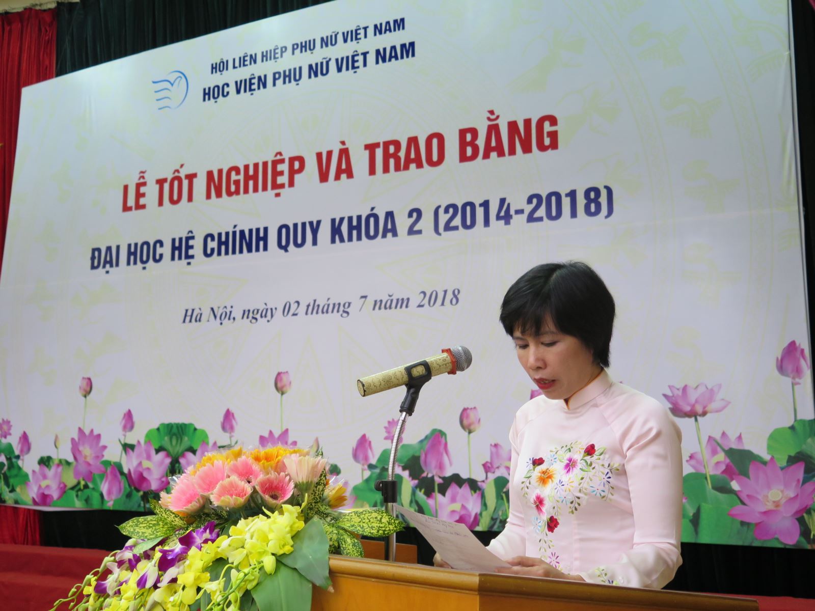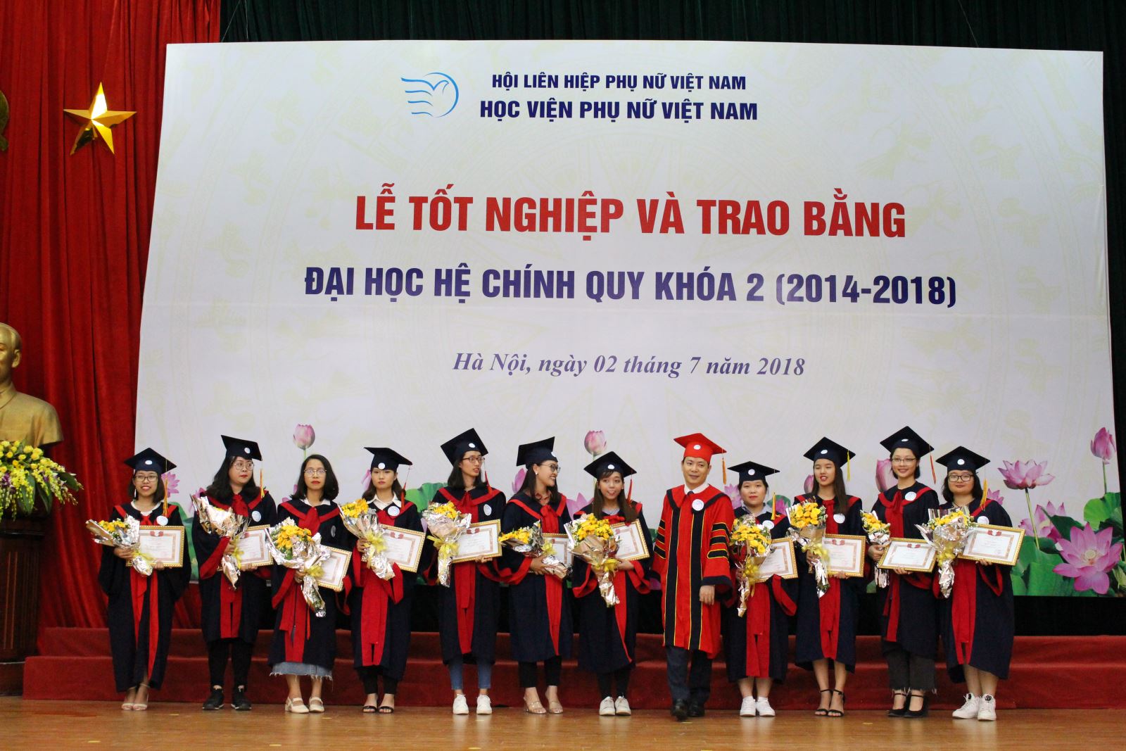 Bà Trần Thị Hương, Phó Chủ tịch Hội LHPN Việt Nam trao bằng tốt nghiệp loại Giỏi cho 13 cử nhân