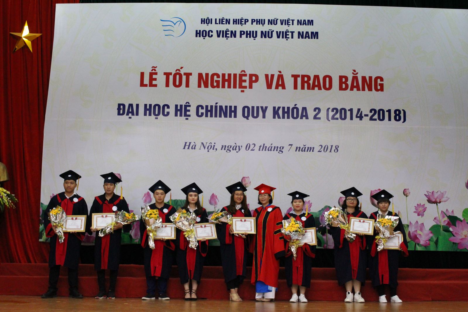Phó Chủ tịch Hội LHPN Việt Nam Trần Thị Hương trao bằng khen cho thủ khoa ngành CTXH và QTKD