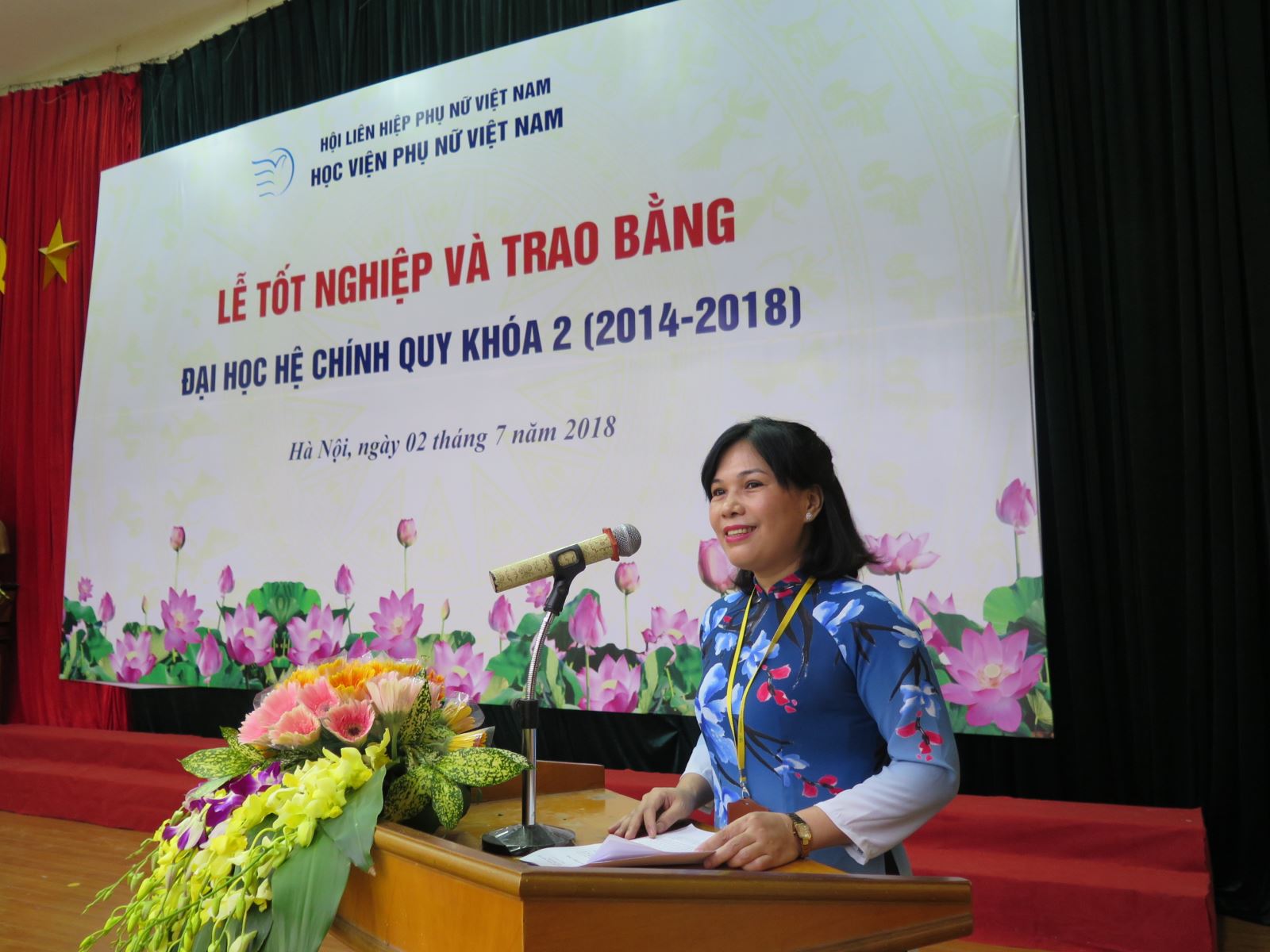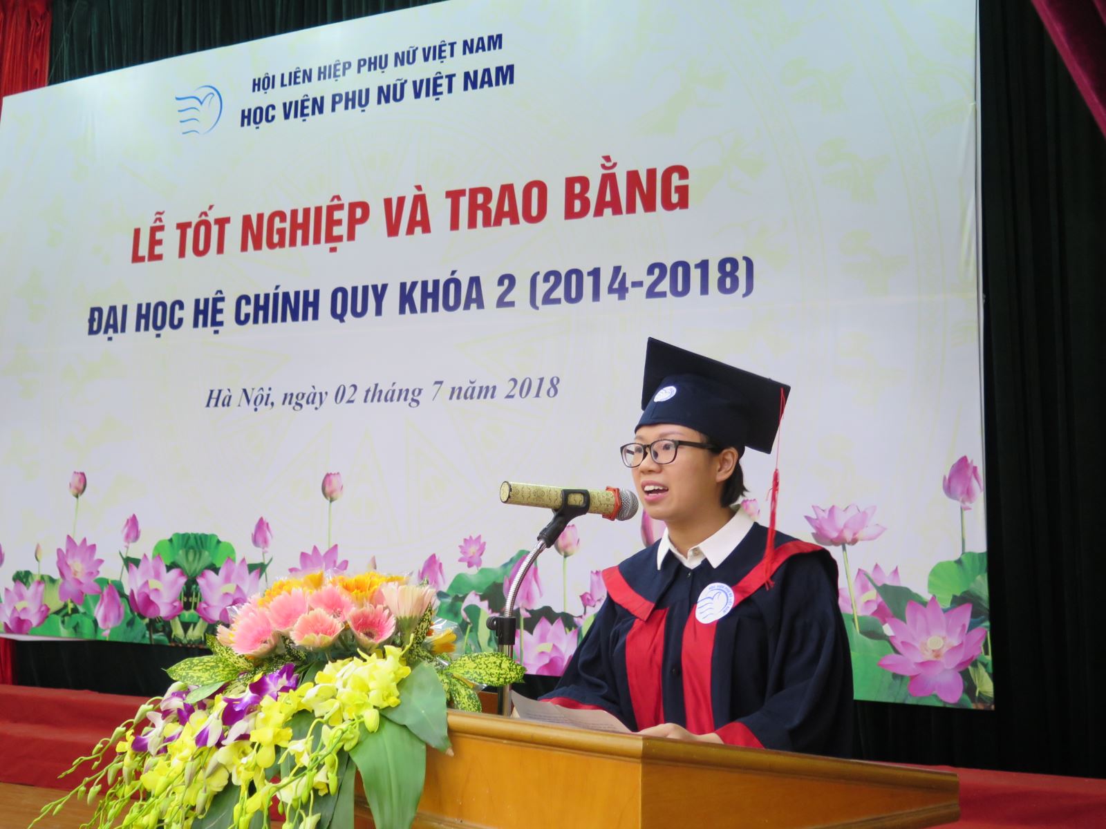 Tân cử nhân Nguyễn Ánh Linh đại diện sinh viên tốt nghiệp khóa II phát biểu cảm tưởng